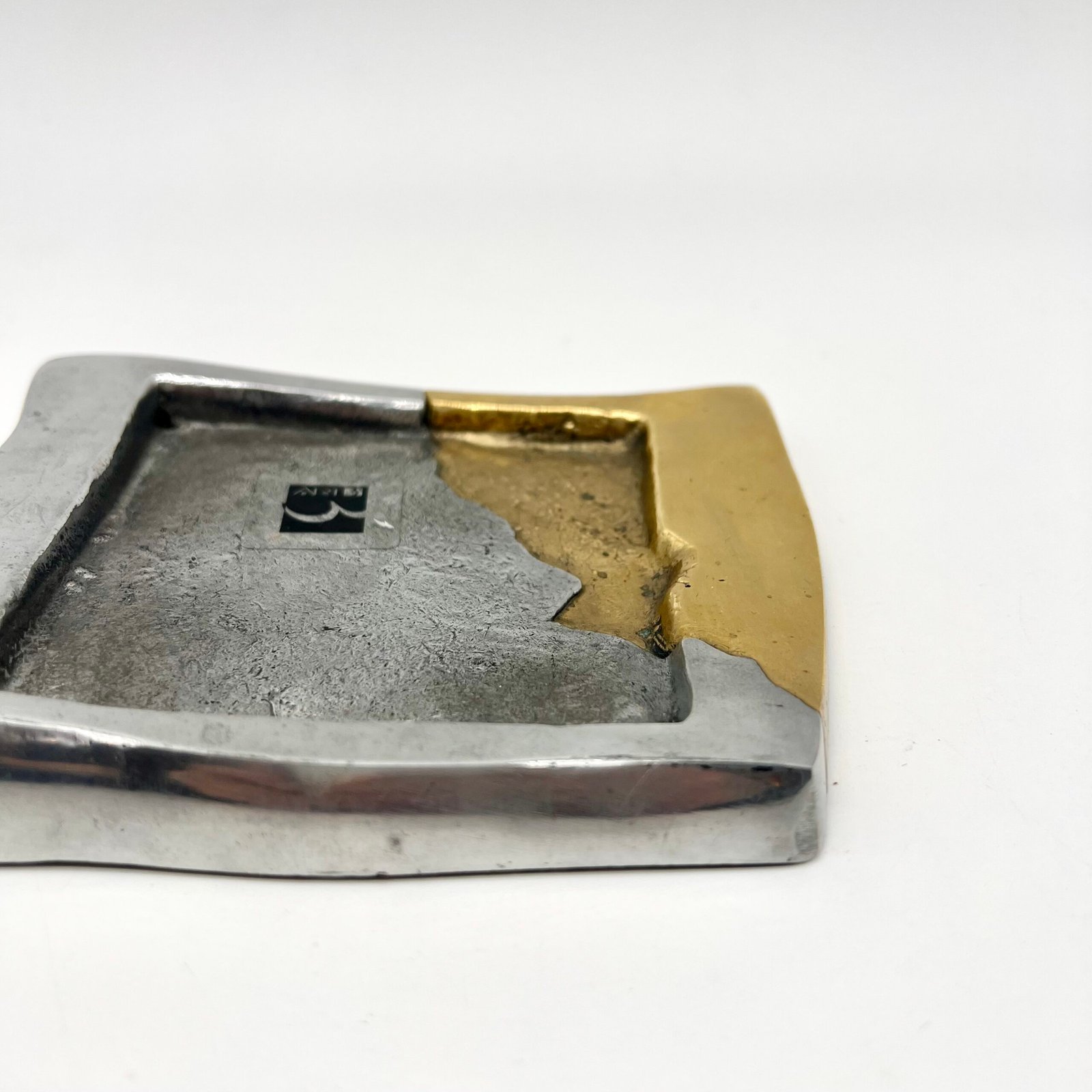Cette pièce est conçue en laiton massif moulé, travaillé à la main, et se distingue par son contraste de finitions : une surface volontairement brute et texturée associée à des zones plus lisses, révélant toute la richesse du matériau.
