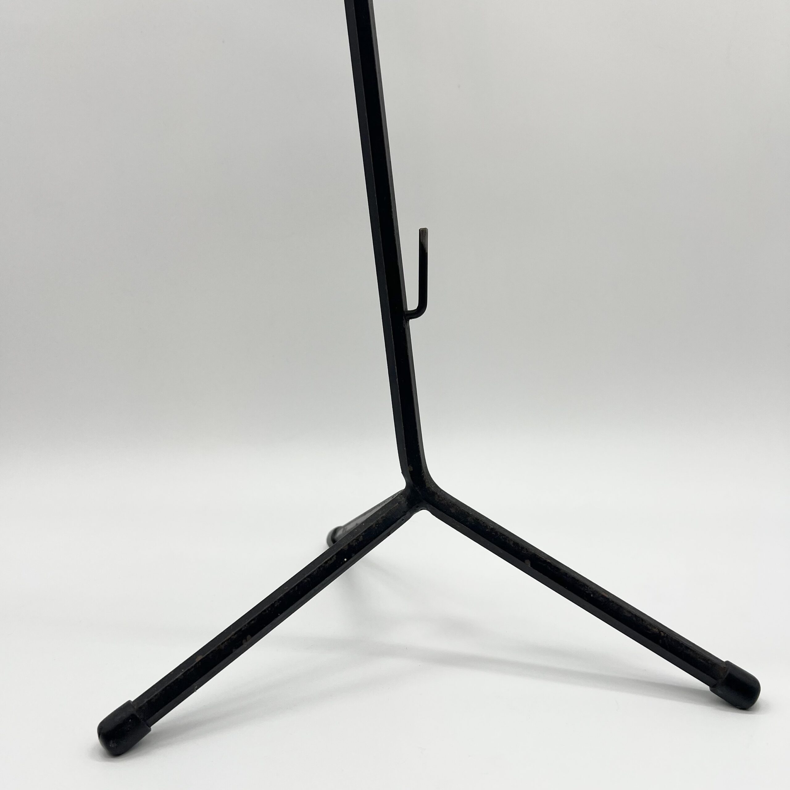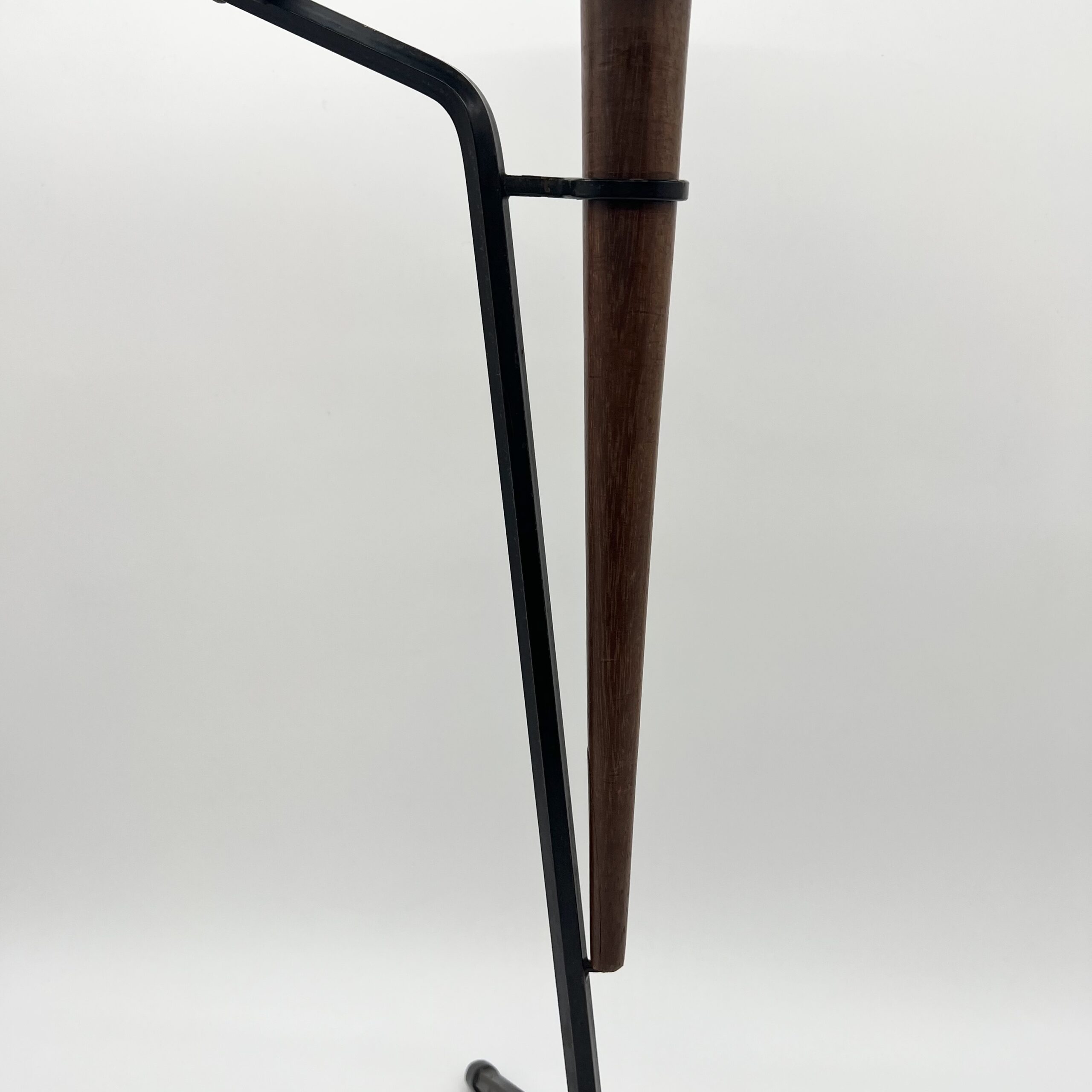 Le petit décroché métallique intégré au bord du plateau permet de poser la cigarette, détail typique du design utilitaire de l’époque.