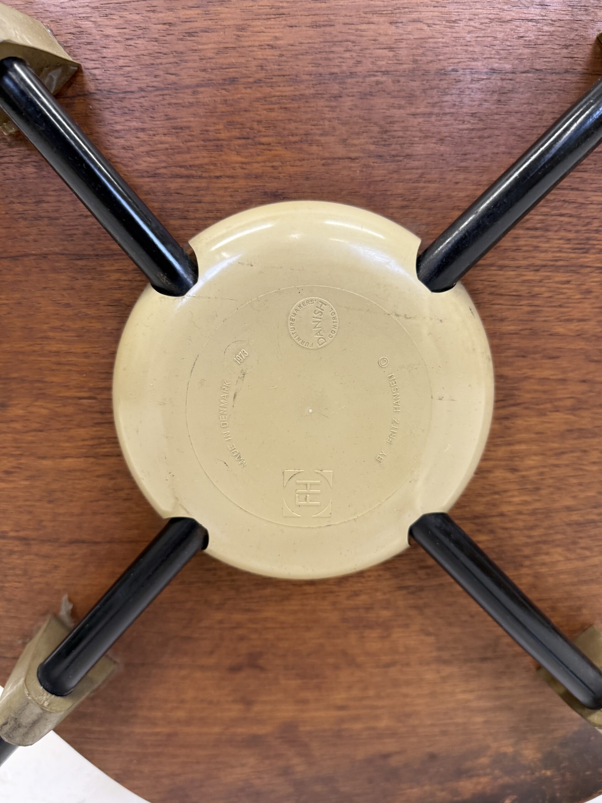 Exemplaire signé sous la base, attestant d’une production Fritz Hansen. Bon état vintage avec traces d’usage cohérentes avec l’âge.