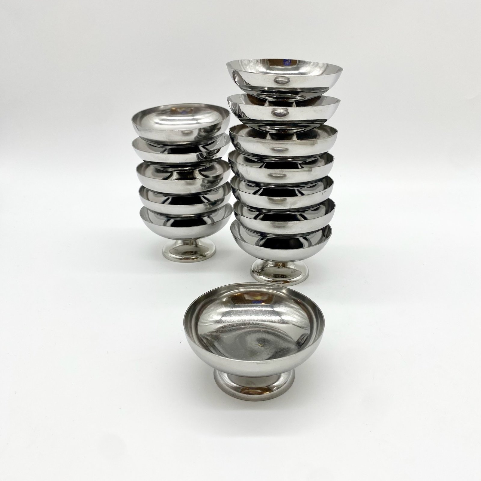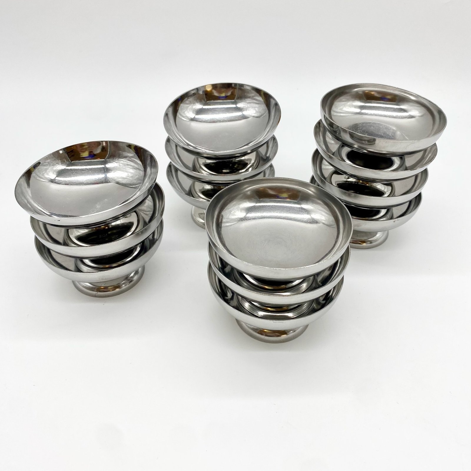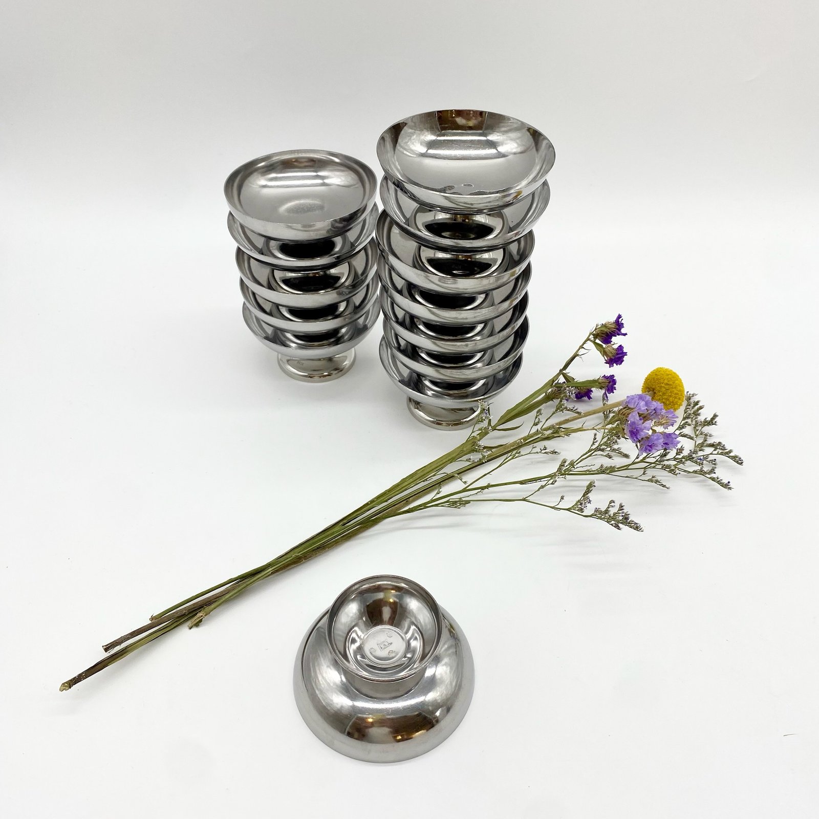 Ces coupes à glace en inox au design classique évoquent les cafés d’autrefois et les plaisirs simples d’un dessert bien présenté.