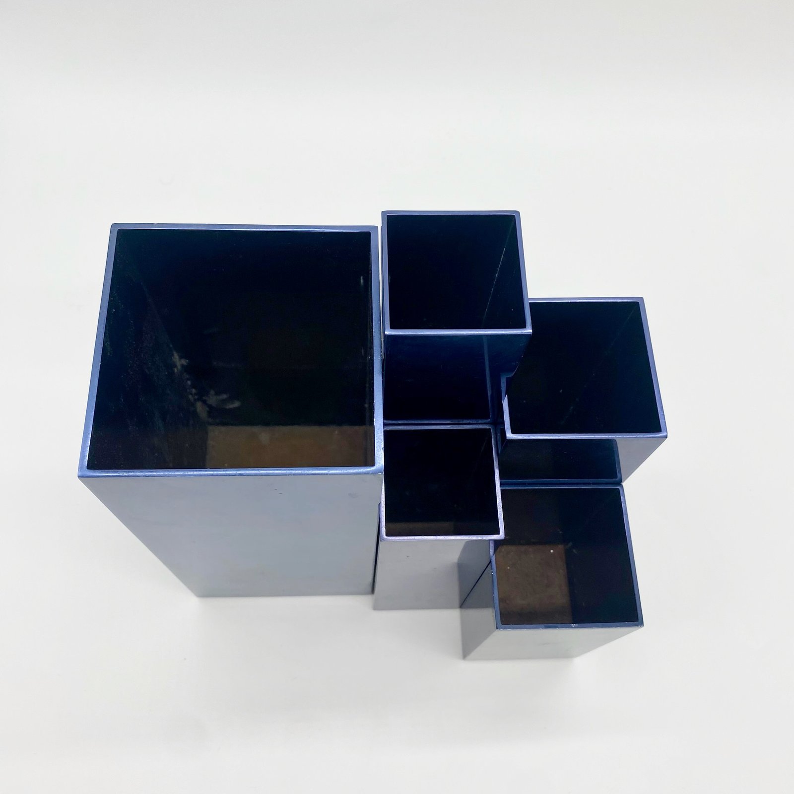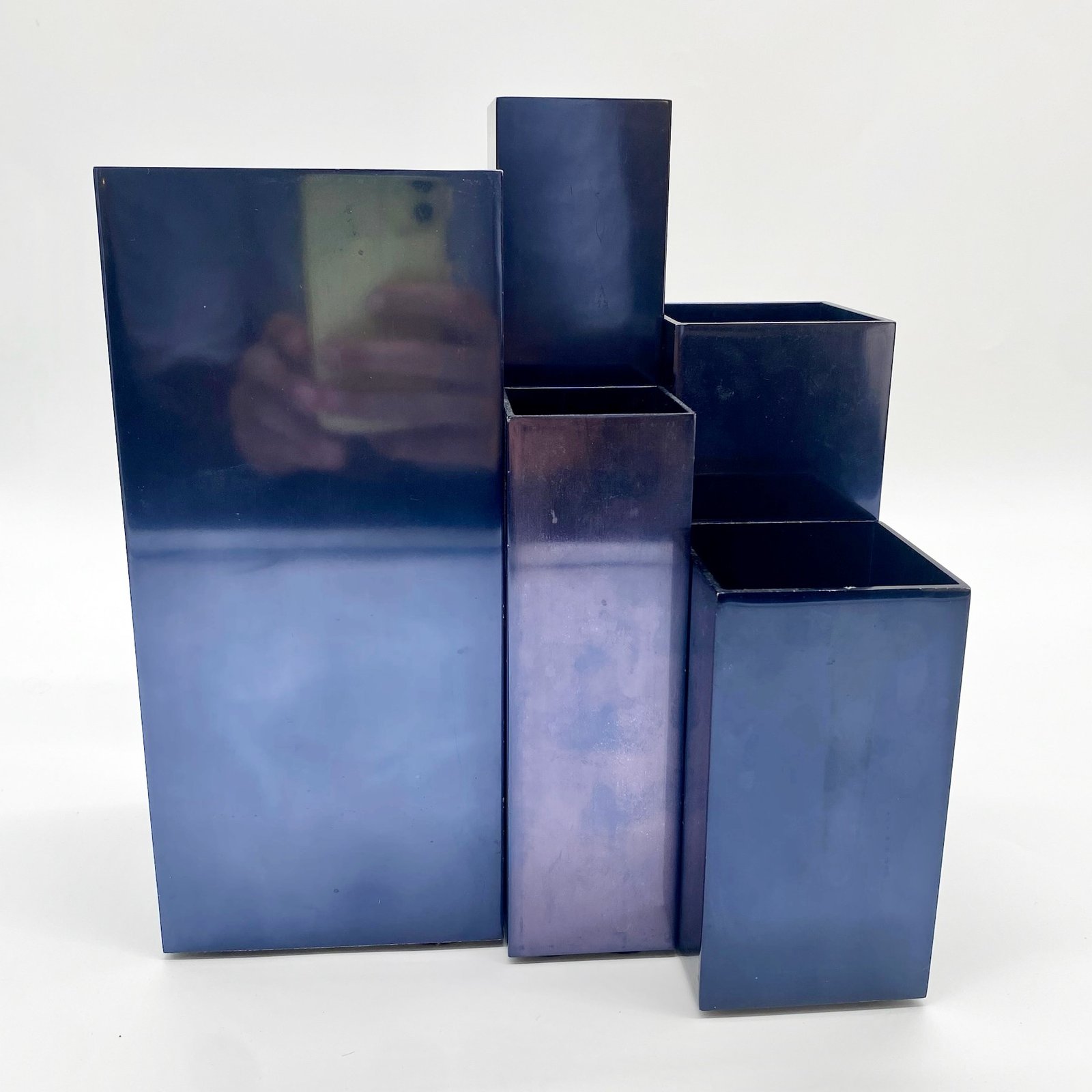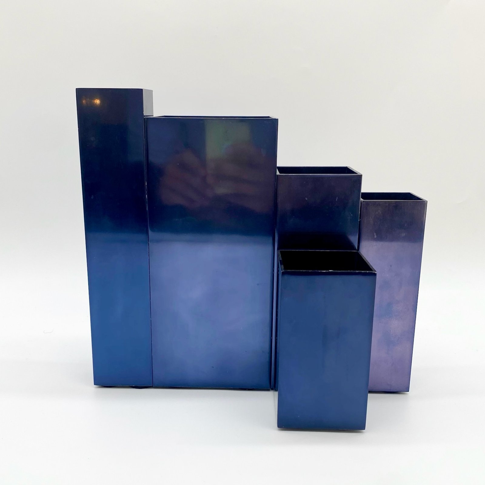 ENSEMBLE DE VASES MODULAIRES EN MÉTAL – BLEU PÉTROLE – 1980s