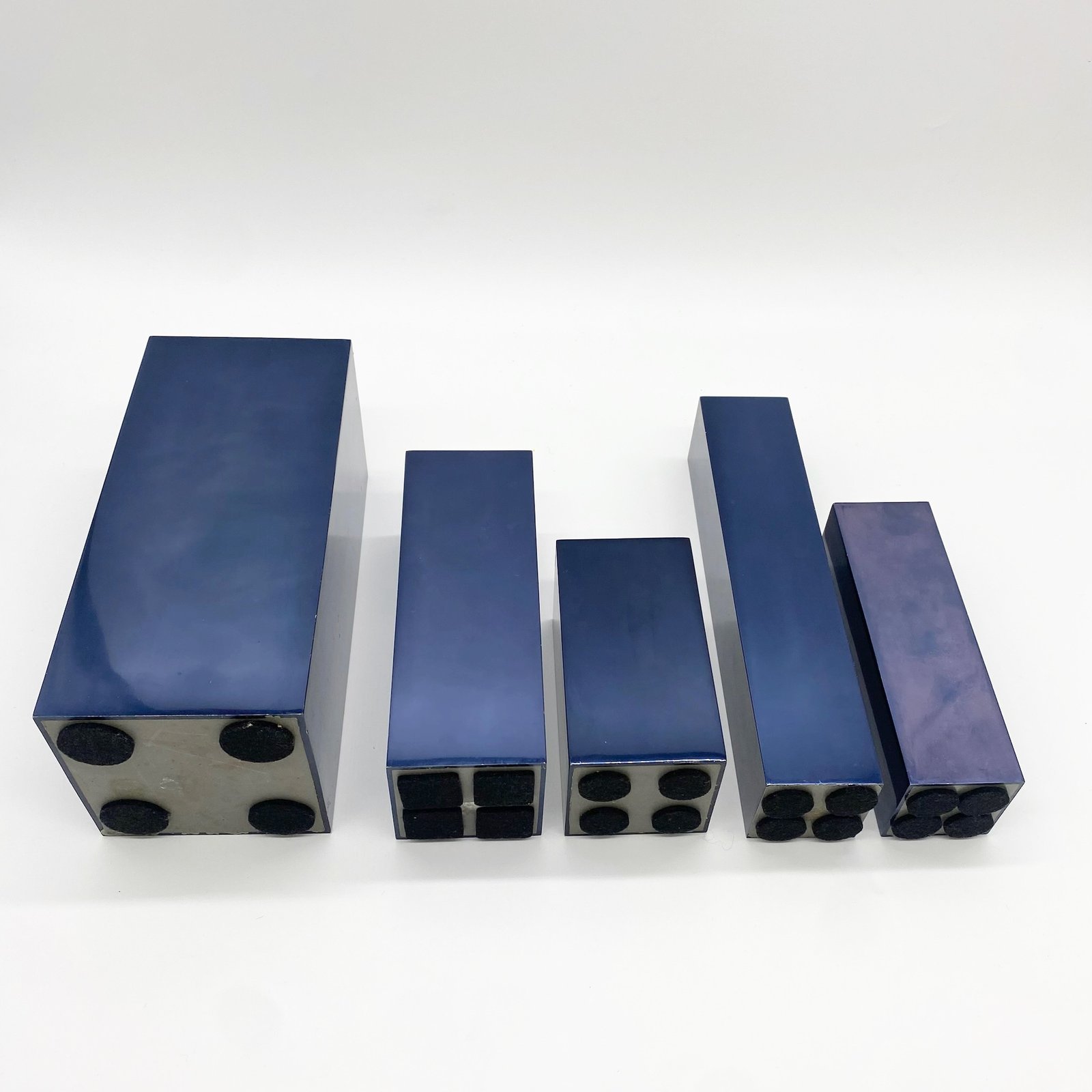 Chaque tube, de hauteur et de largeur différente, est indépendant et peut être déplacé ou recomposé librement selon l’envie. Leur forme simple et géométrique permet des mises en scène variées, à la fois sculpturales et minimalistes.