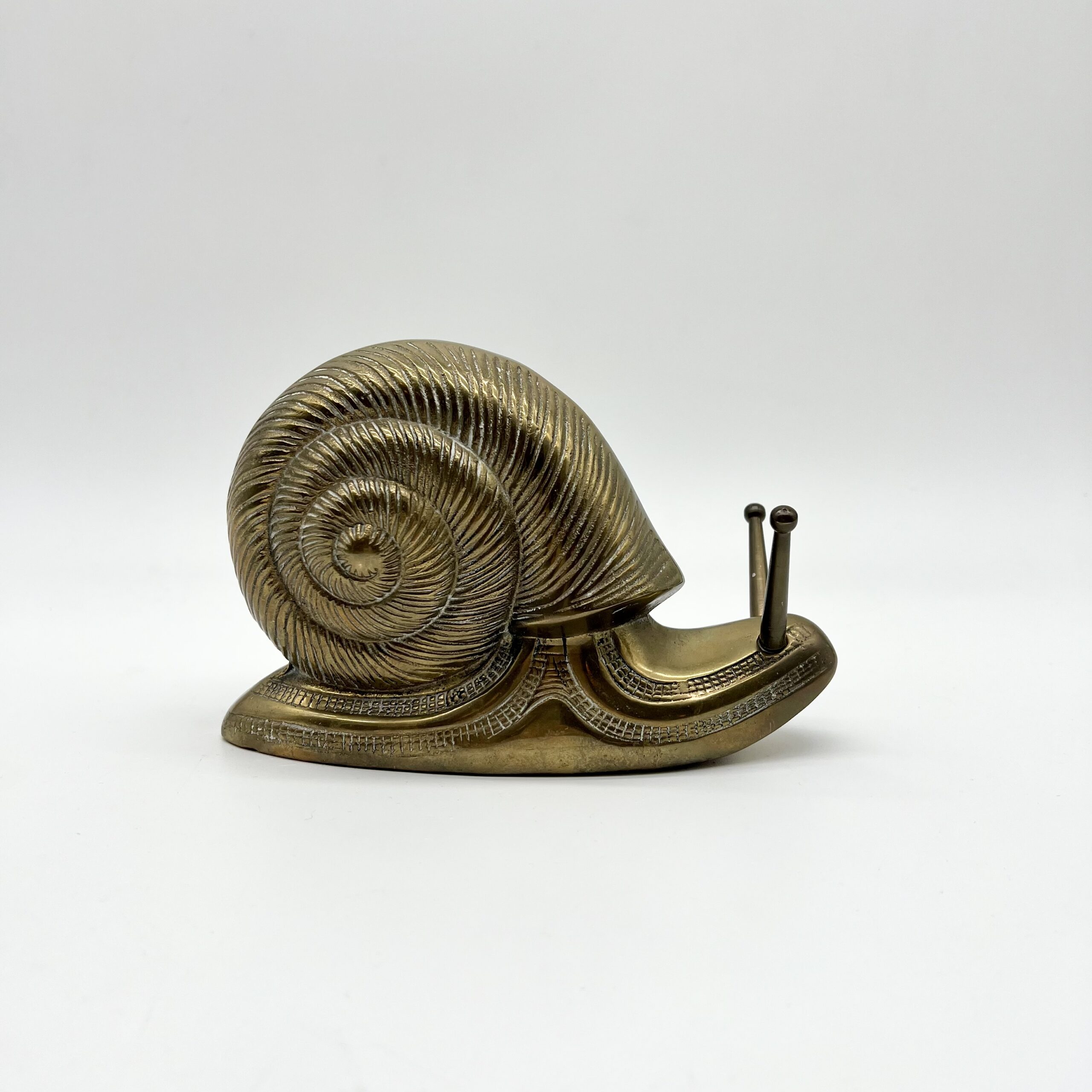 Objet décoratif emblématique des intérieurs des années 70, cet escargot trouvera facilement sa place sur une bibliothèque, une console ou un bureau, comme pièce sculpturale à part entière.