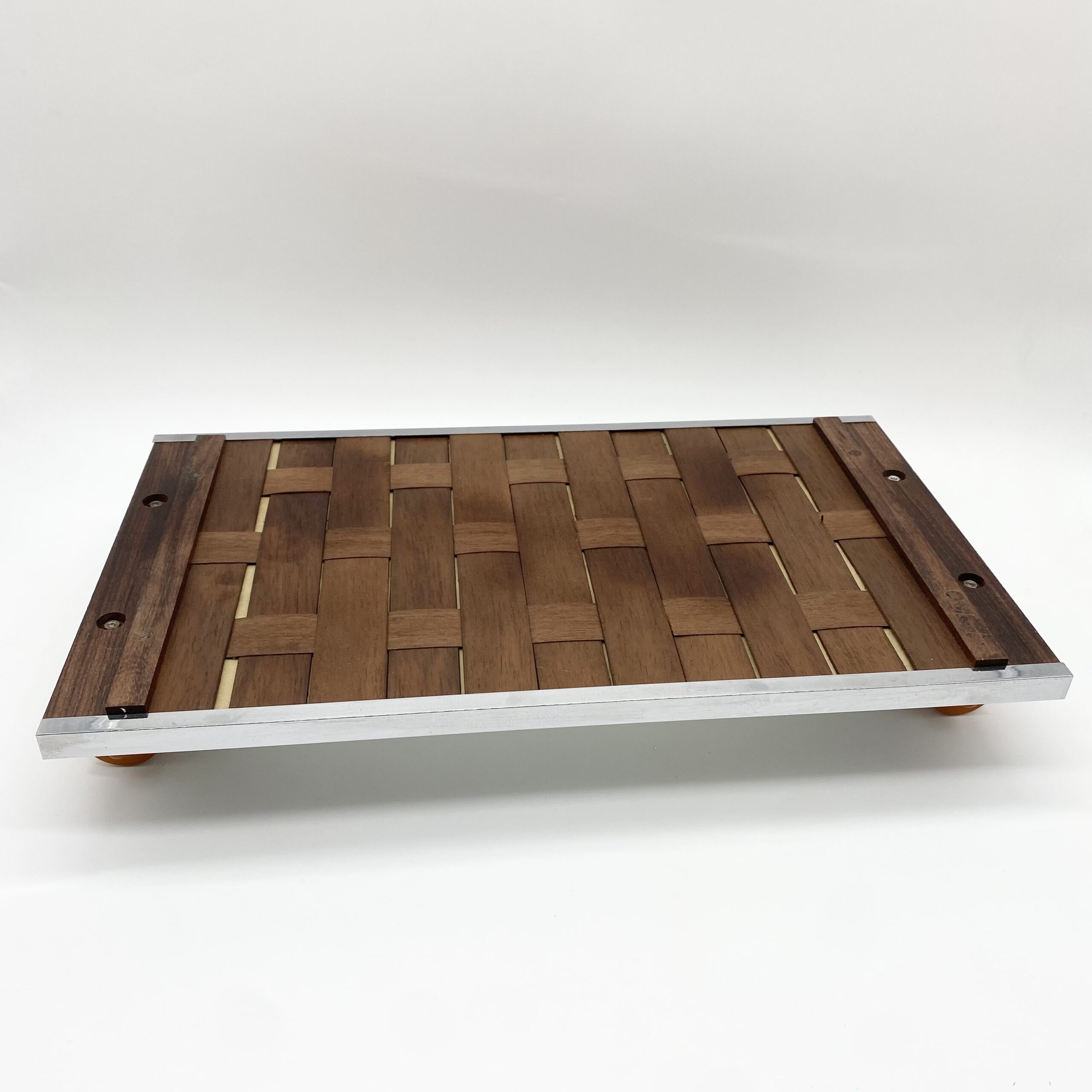 Superbe plateau vintage des années 1970 mêlant matériaux et finitions design.