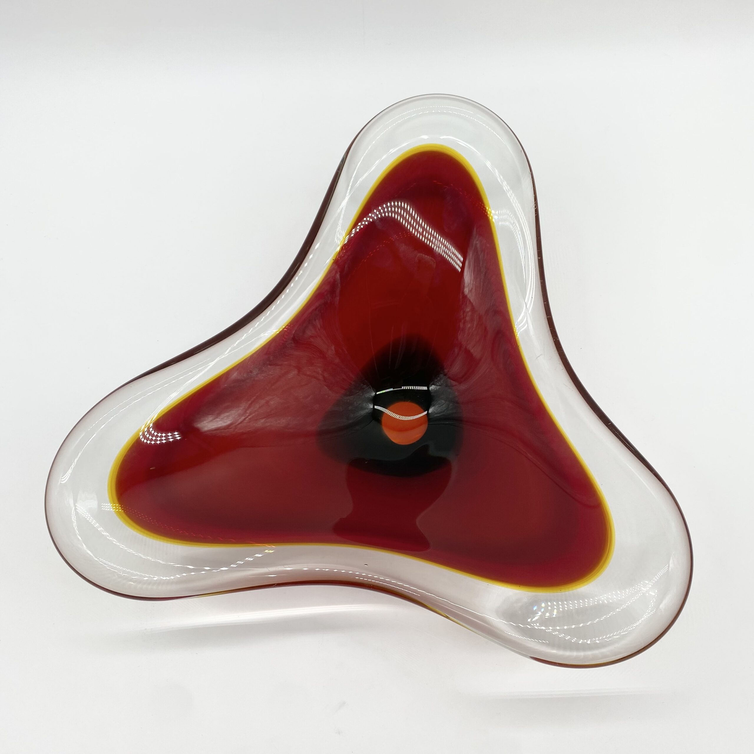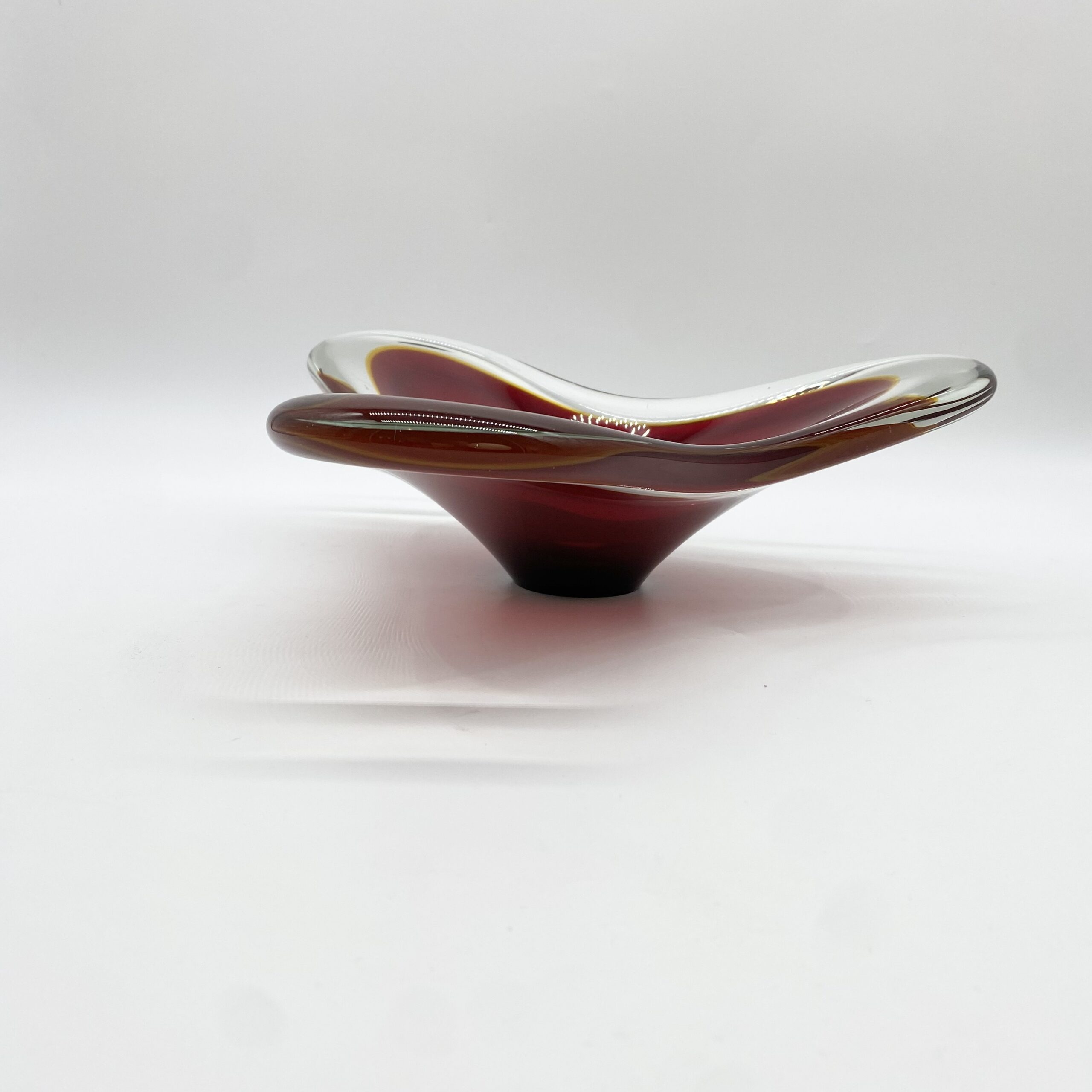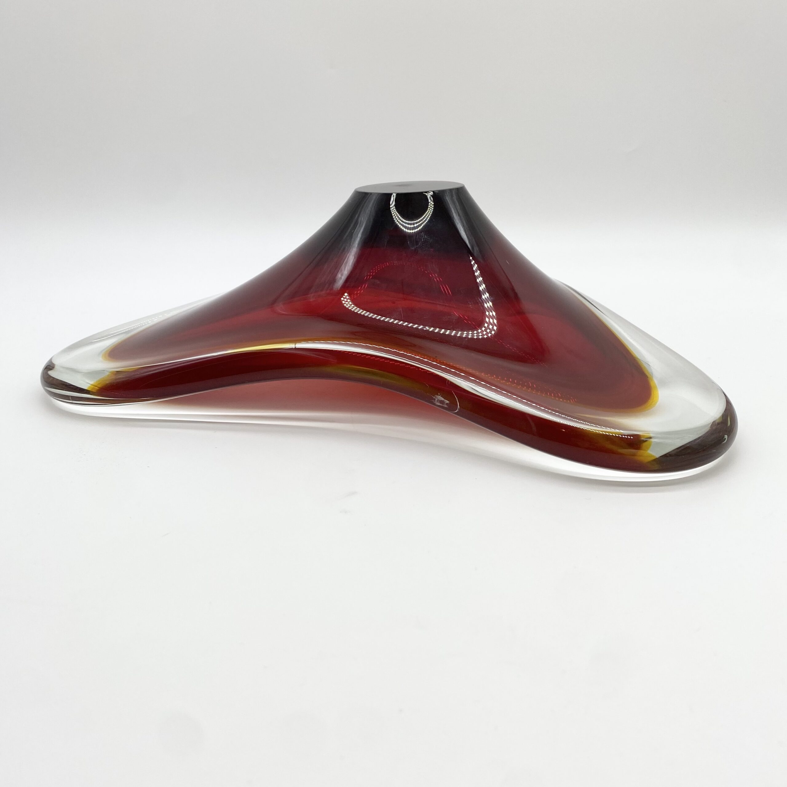Superbe pièce en verre de Murano réalisée selon la technique du Sommerso, caractérisée par des couches de verre coloré emprisonnées dans une masse cristalline.