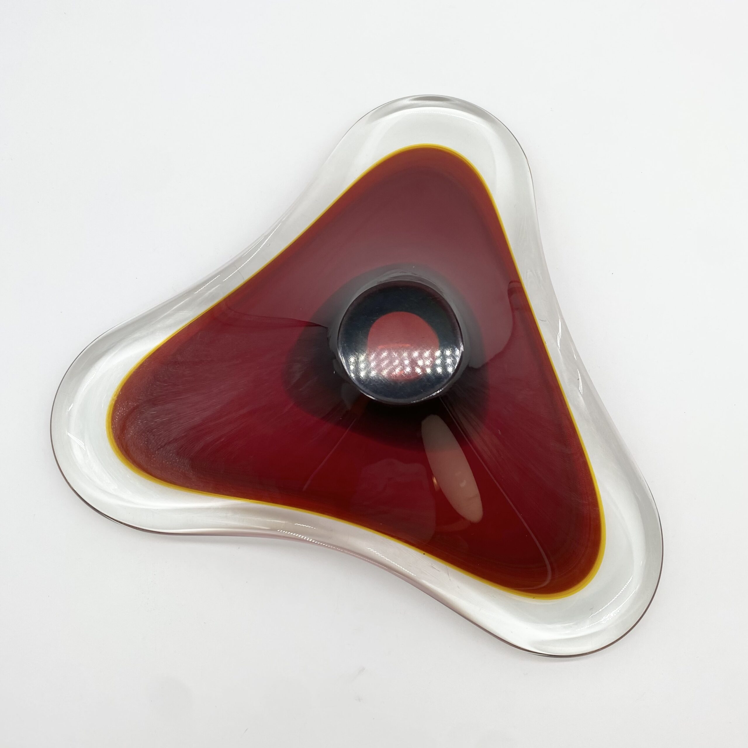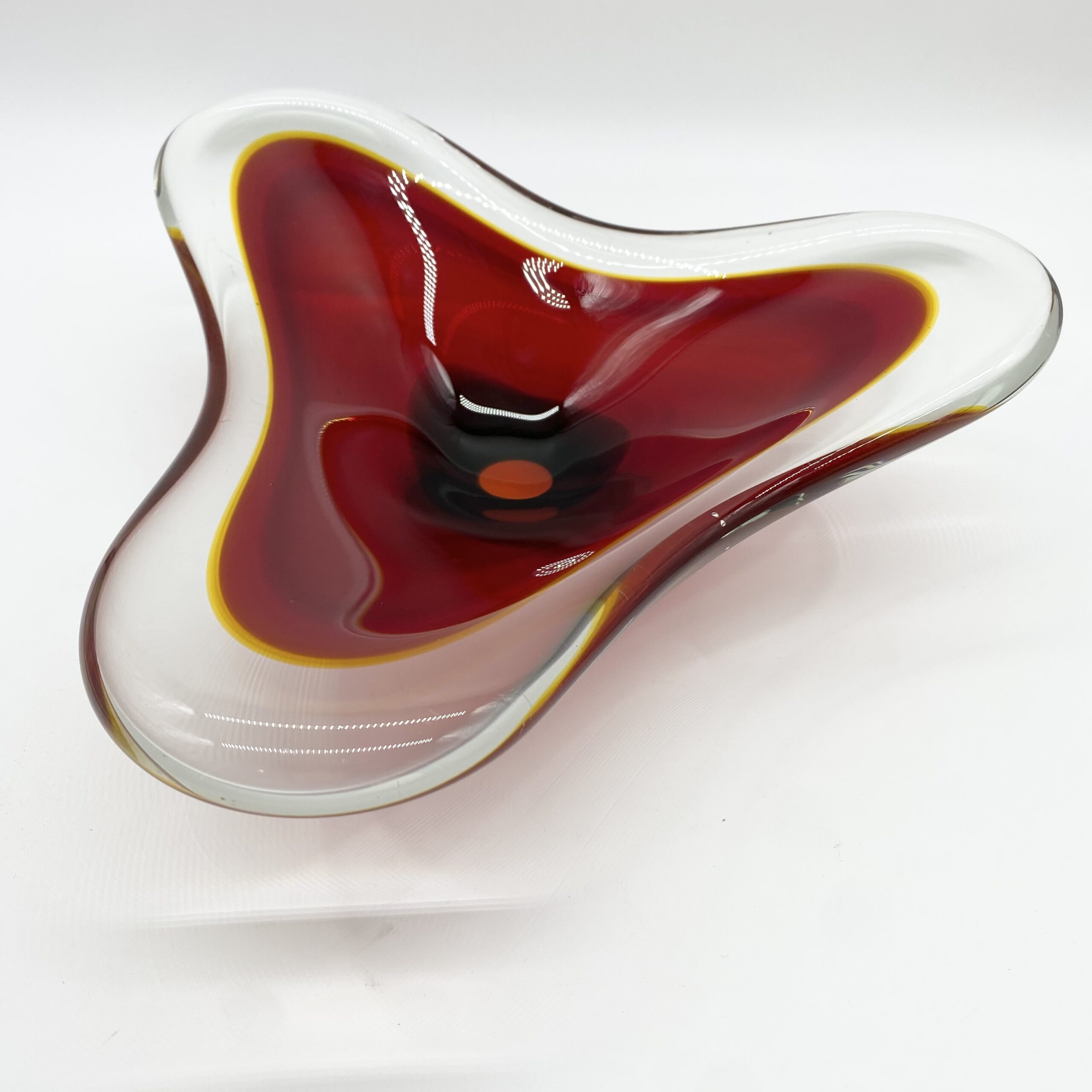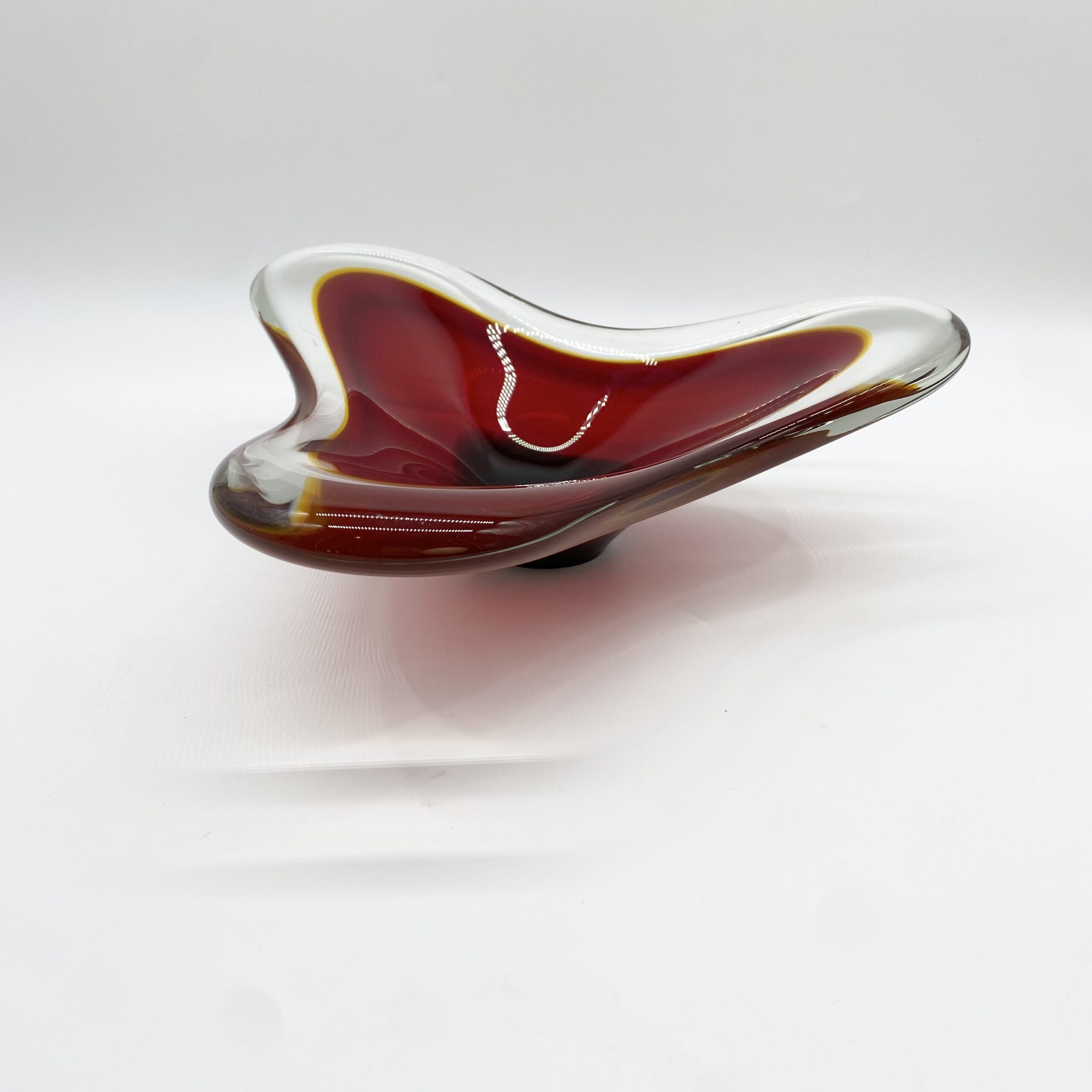 Superbe pièce en verre de Murano réalisée selon la technique du Sommerso, caractérisée par des couches de verre coloré emprisonnées dans une masse cristalline.