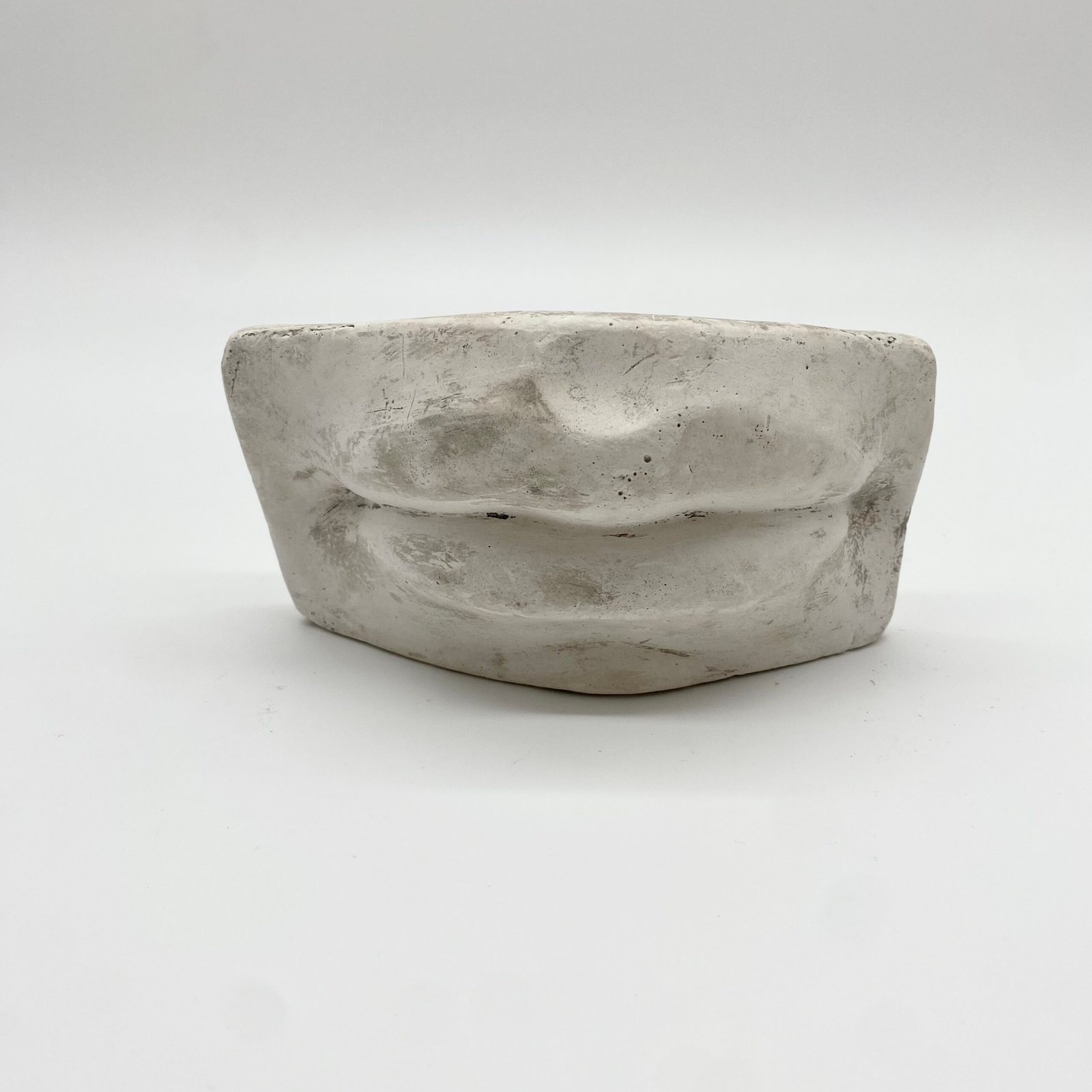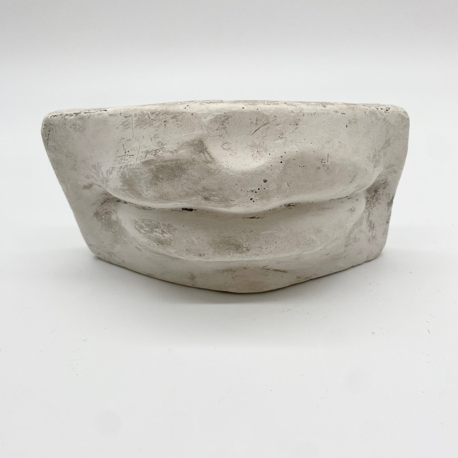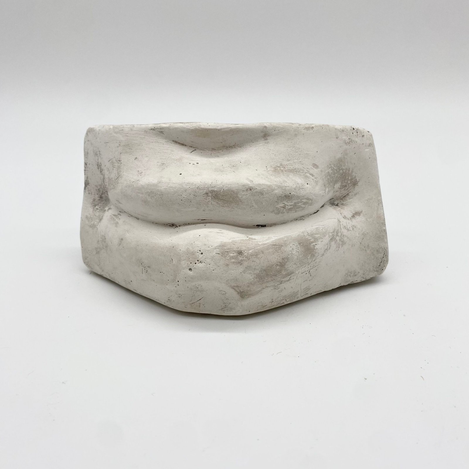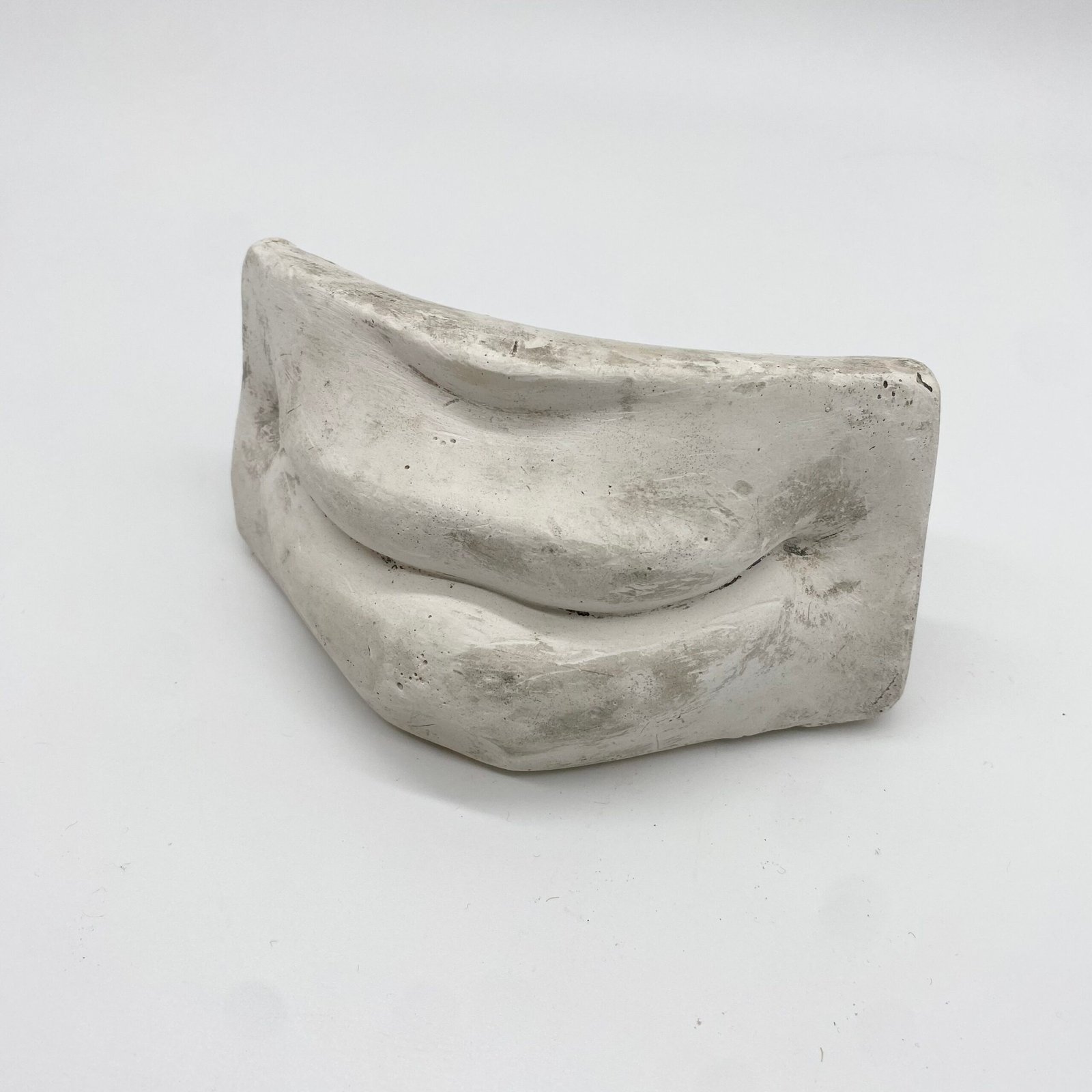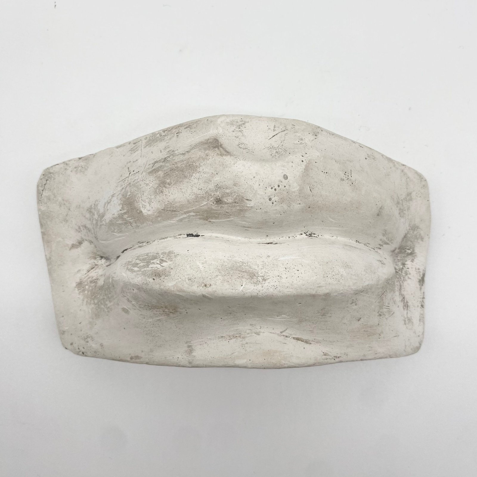Fragment d’étude en plâtre représentant une bouche sculptée, utilisé traditionnellement dans les ateliers de dessin pour l’apprentissage des volumes, des ombres et des proportions du visage.