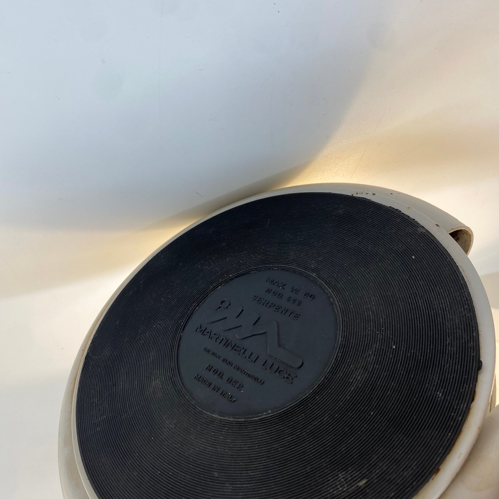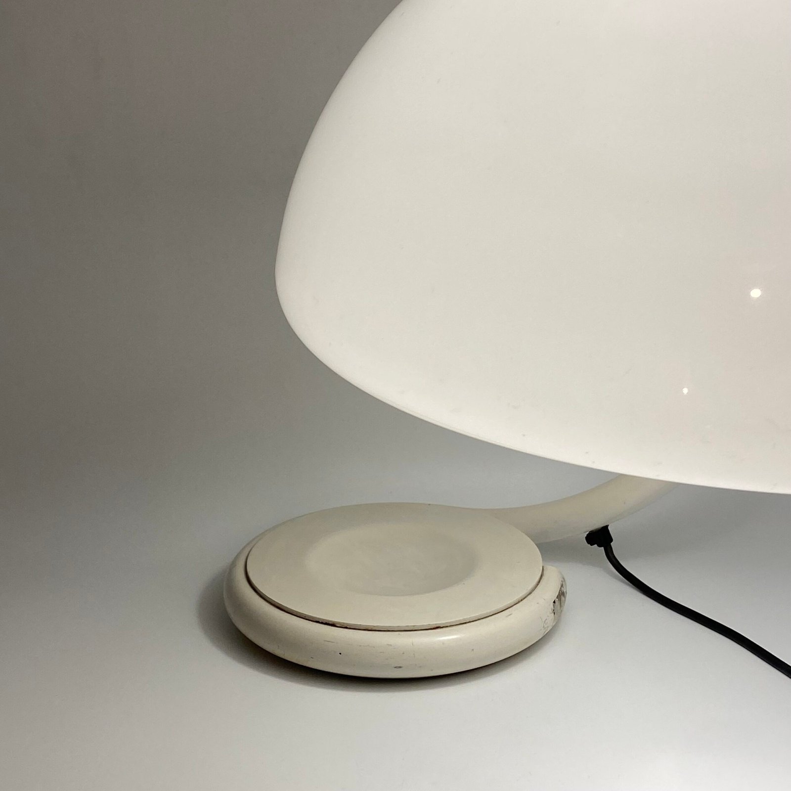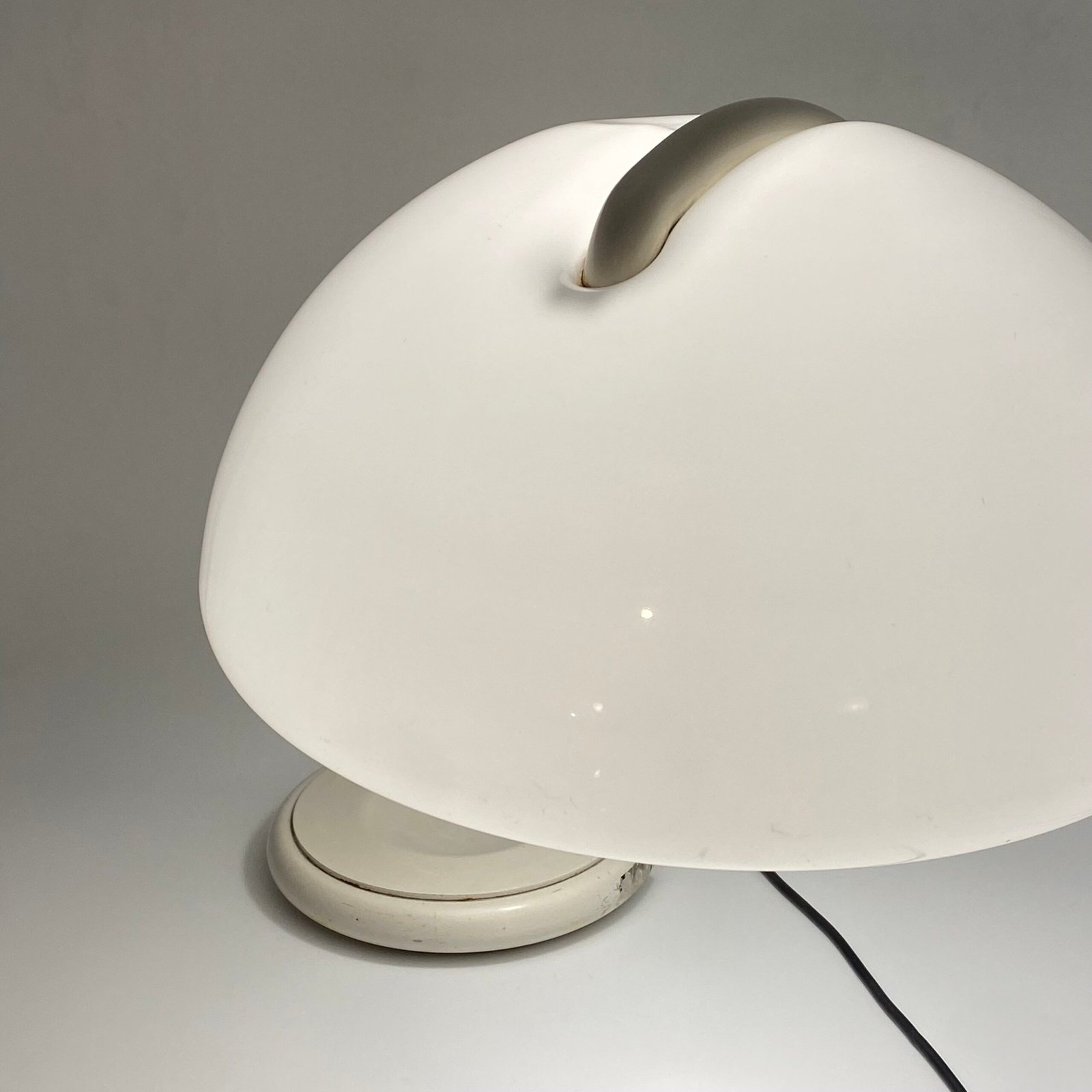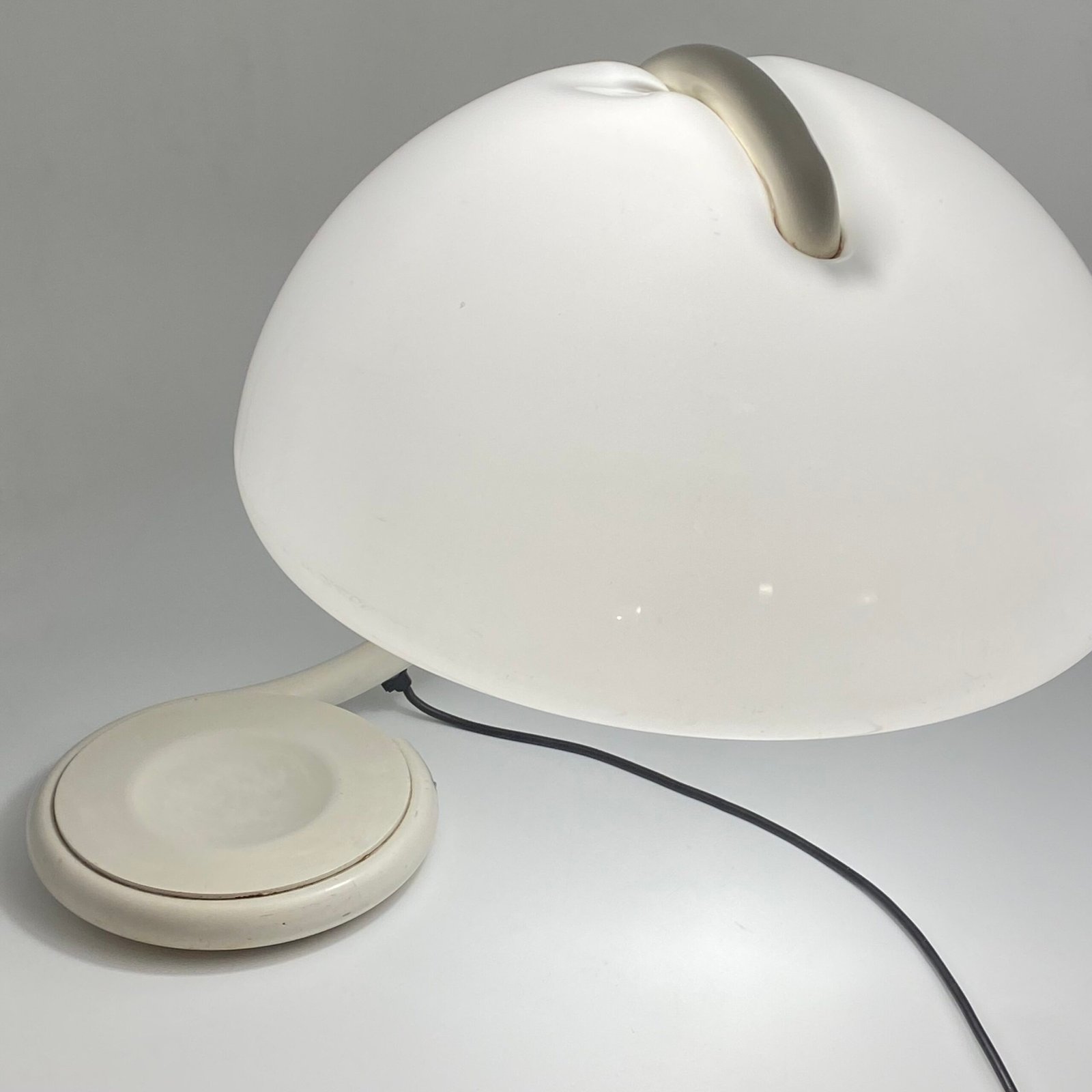 Ce modèle original des années 70 présente une élégante finition blanc cassé et porte la signature Martinelli Luce sous la base, garantissant son authenticité.