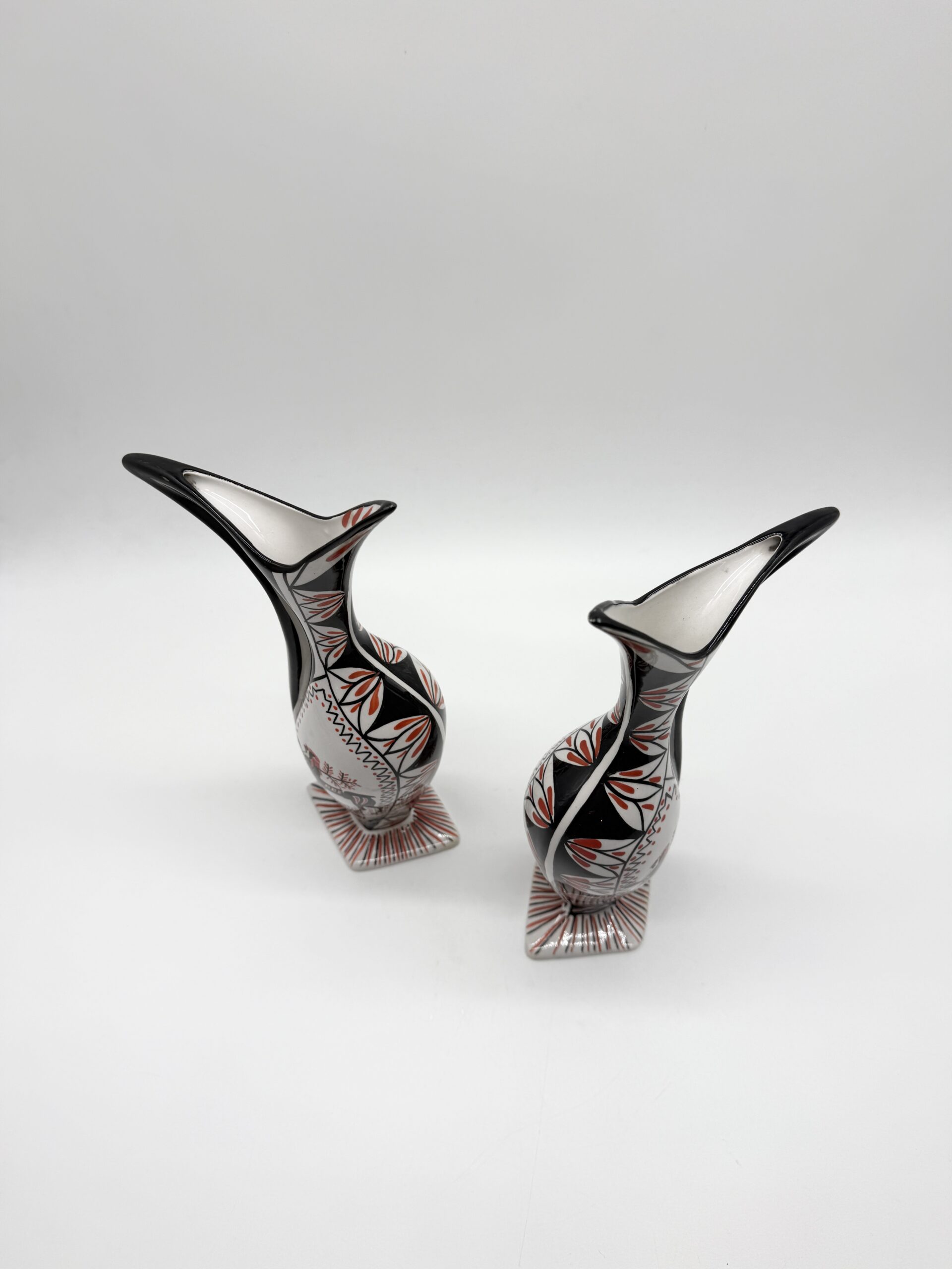 Témoins du design italien d’après-guerre, ces vases conjuguent modernisme et inspiration folklorique, offrant une forte présence décorative.