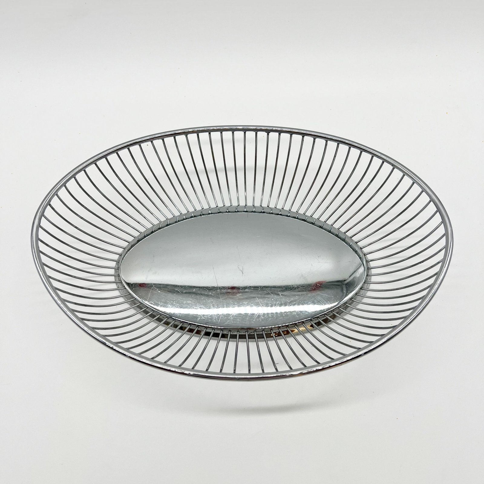 Élégante corbeille à fruits / pain éditée par Alfra Alessi, réalisée en métal chromé.