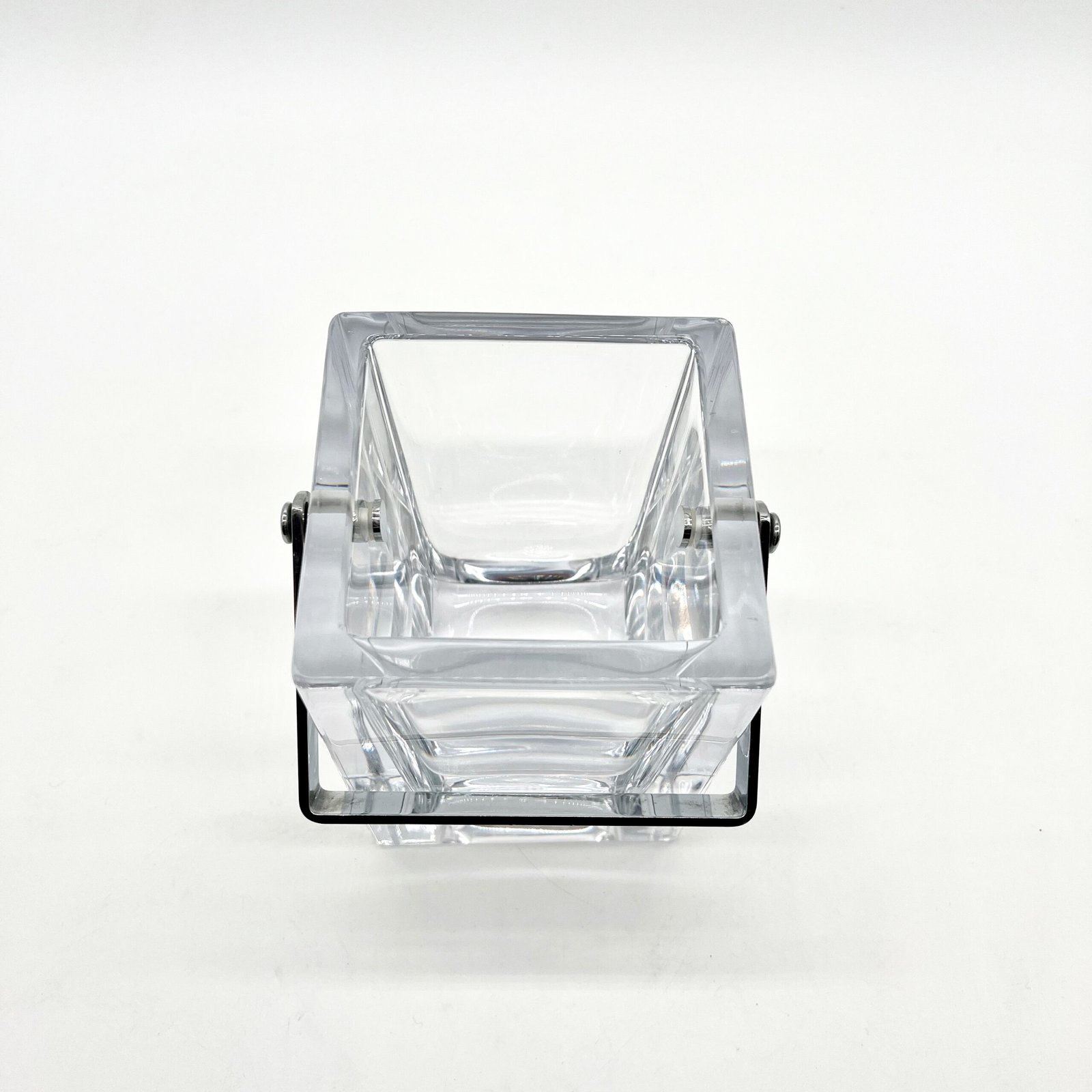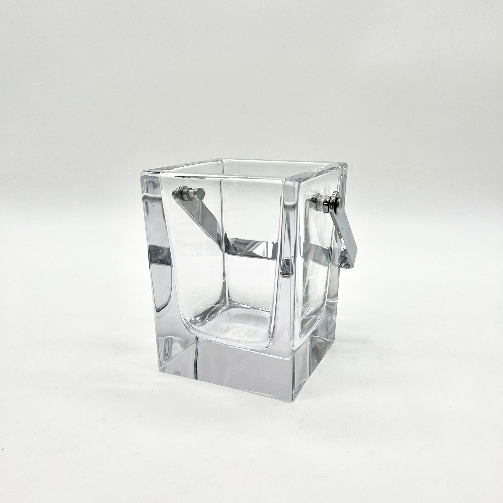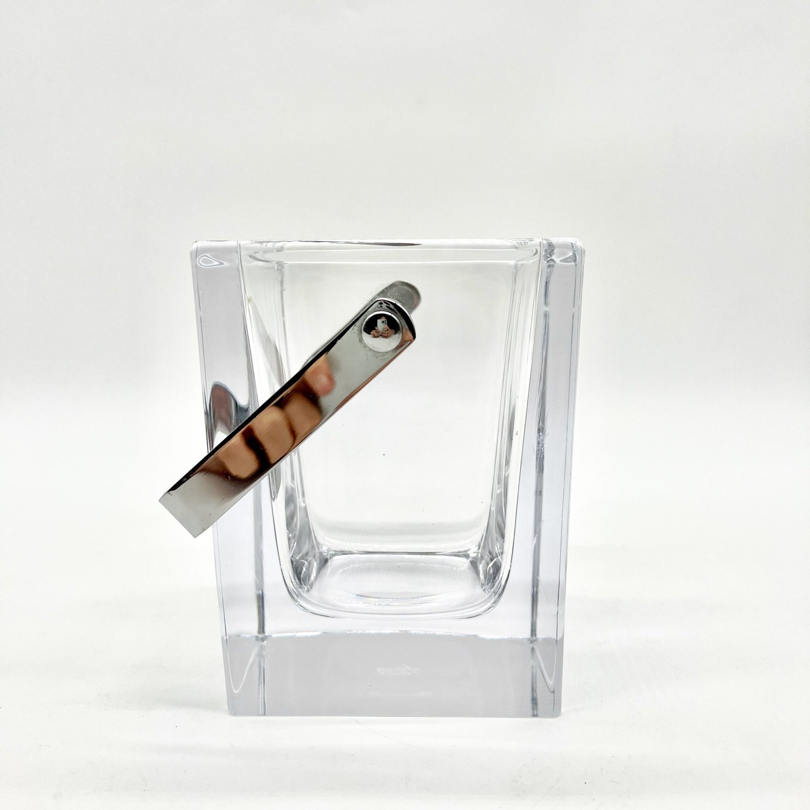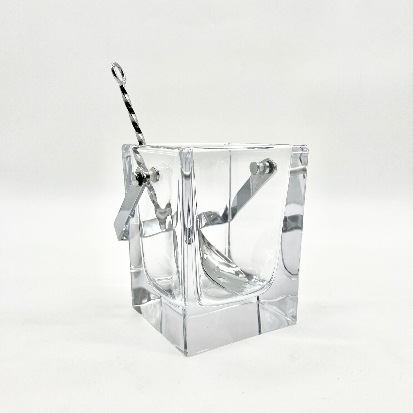Magnifique seau à glace en cristal de Sèvres, caractéristique du style Art Déco, avec une élégante anse en métal chromé.