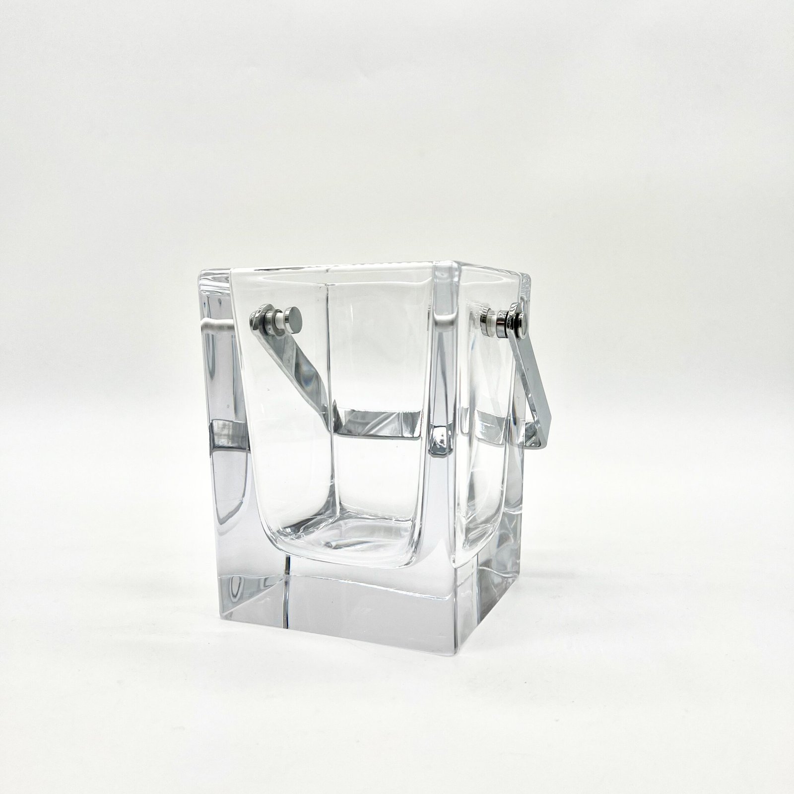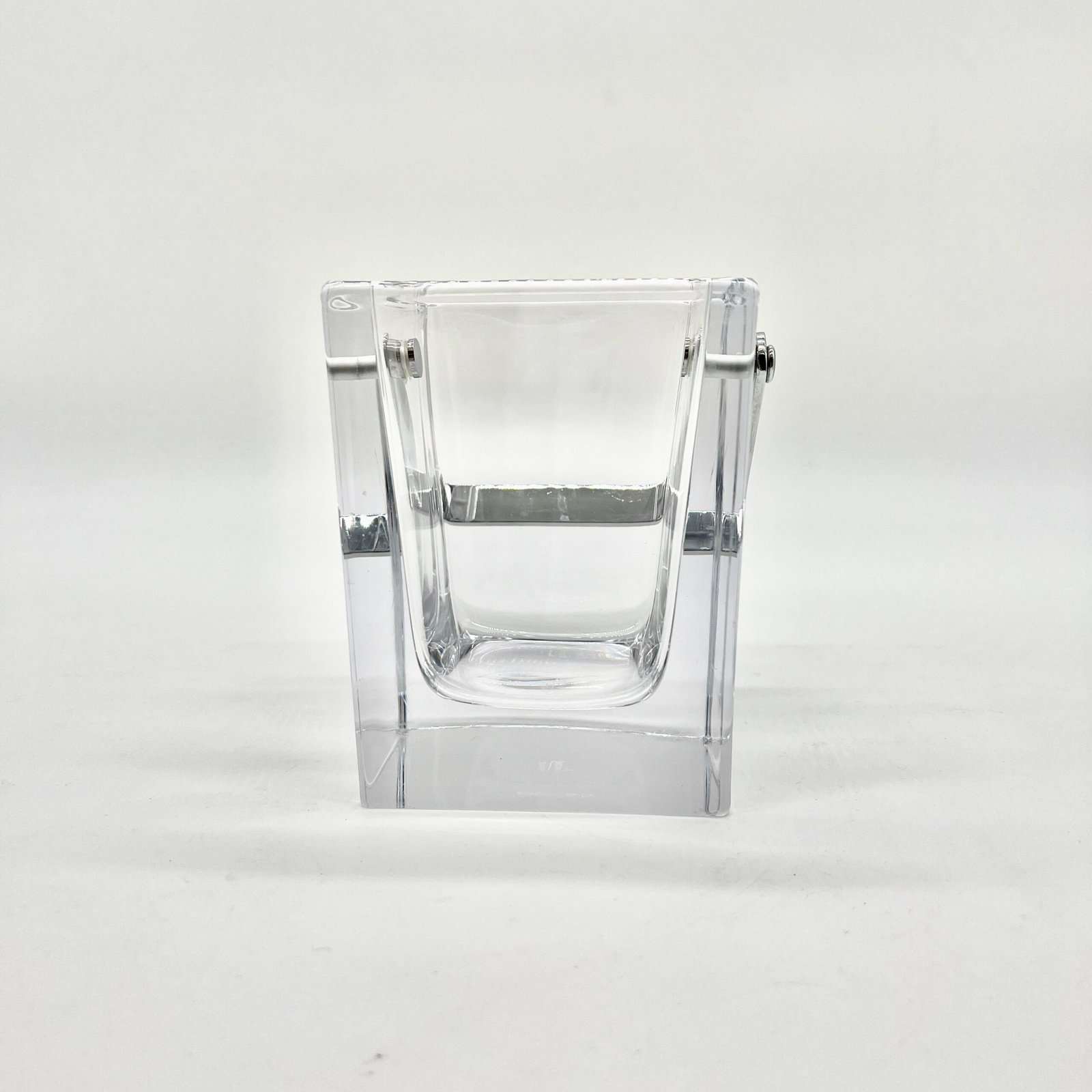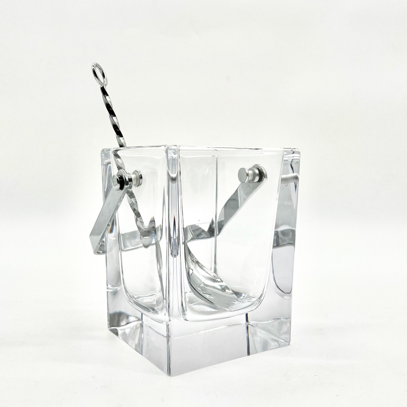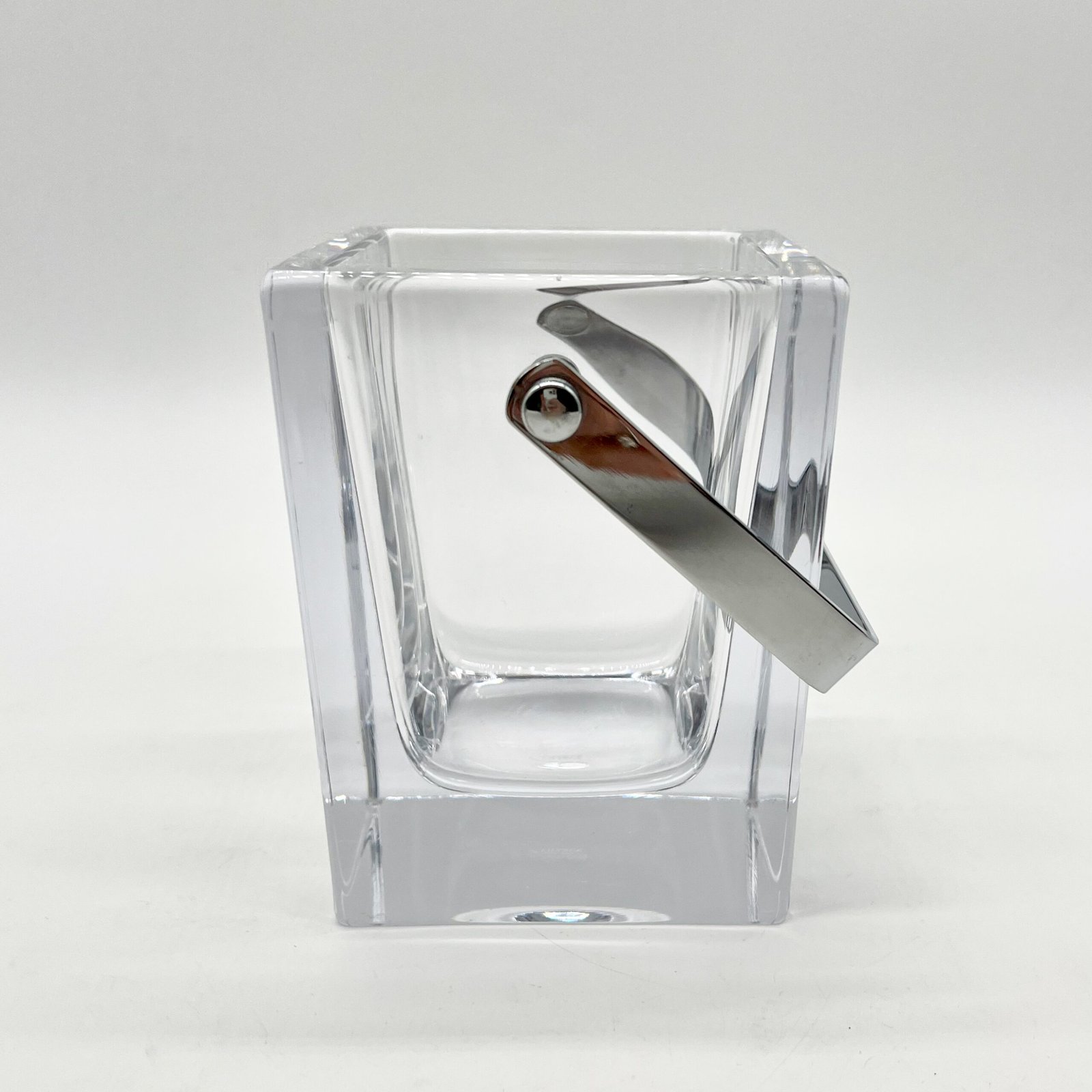 Magnifique seau à glace en cristal de Sèvres, caractéristique du style Art Déco, avec une élégante anse en métal chromé.