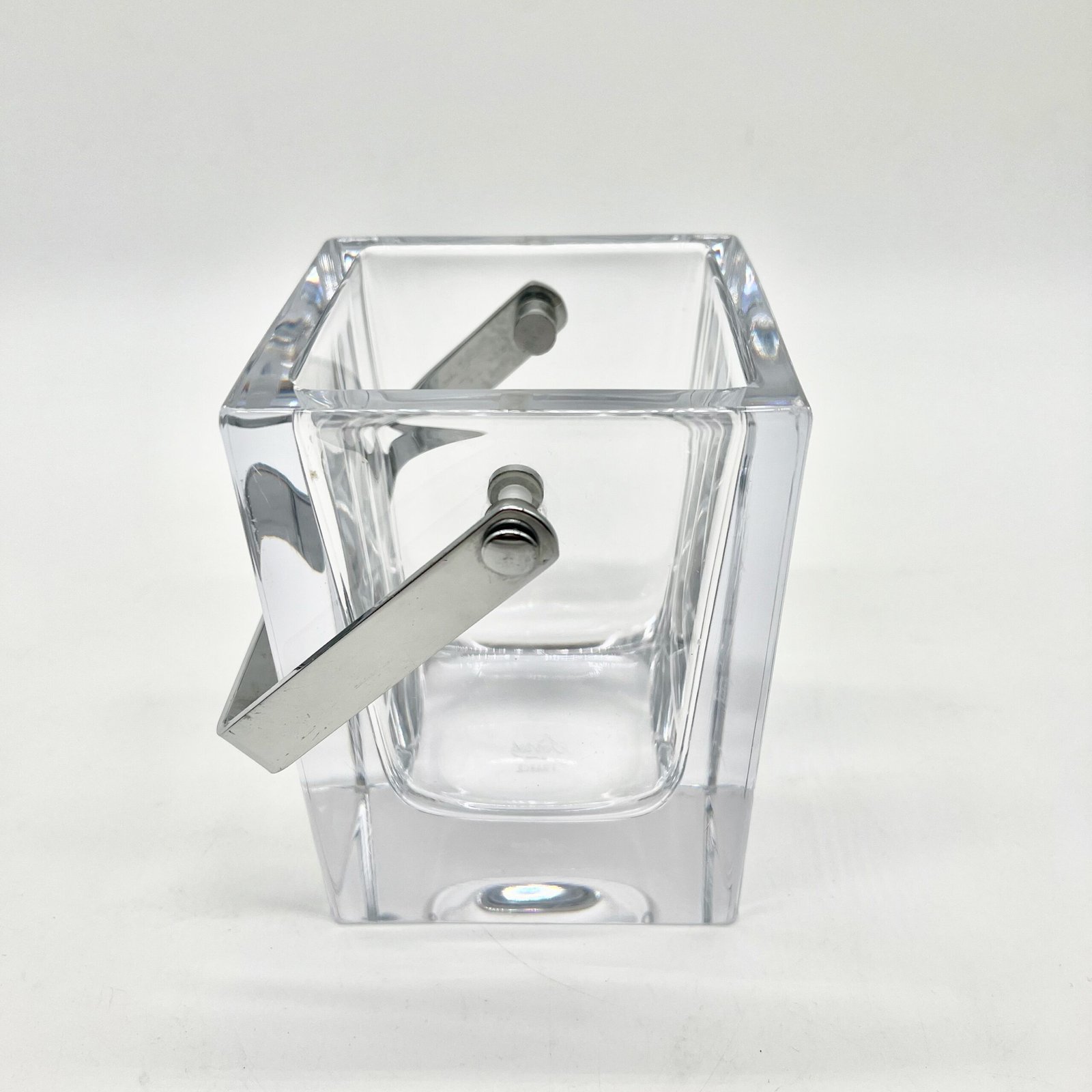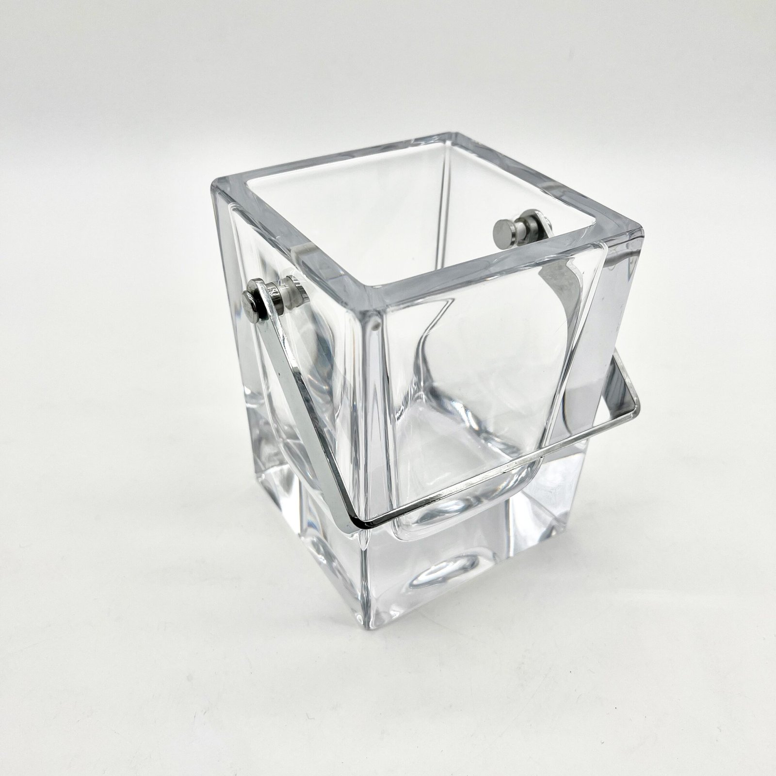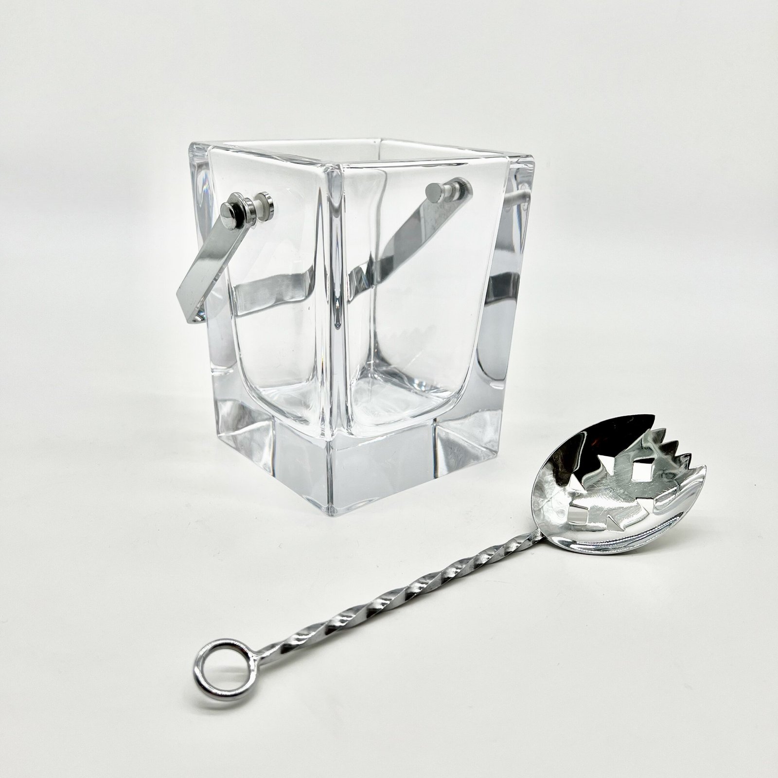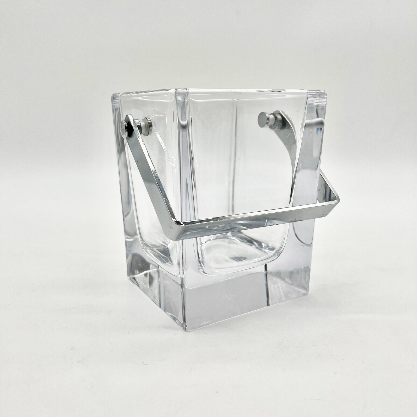 Magnifique seau à glace en cristal de Sèvres, caractéristique du style Art Déco, avec une élégante anse en métal chromé.