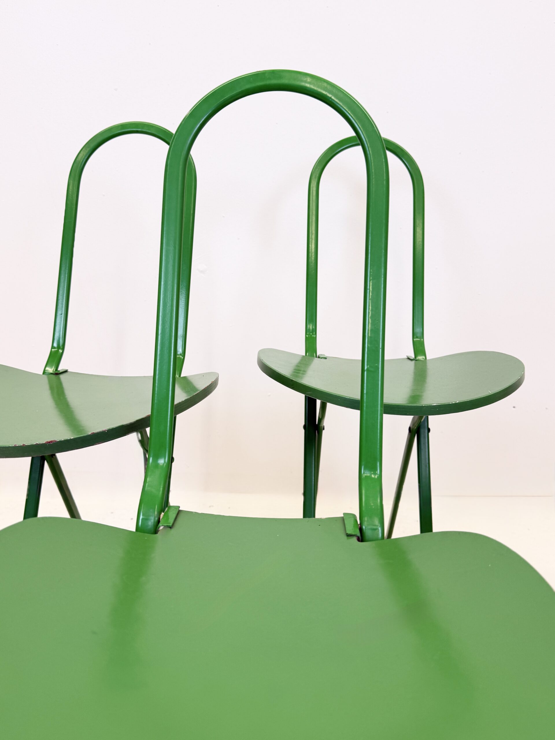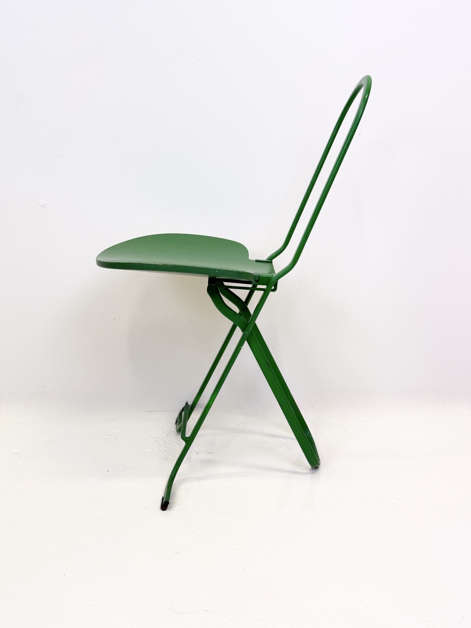 Structure tubulaire en métal laqué et assise en bois laqué, au design minimaliste caractéristique. Modèles pliants, pratiques et légers.