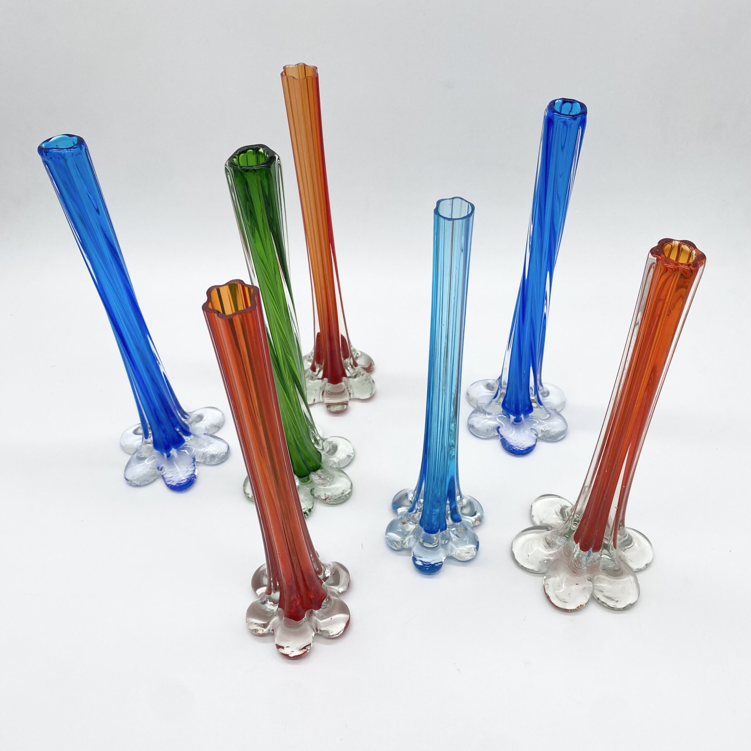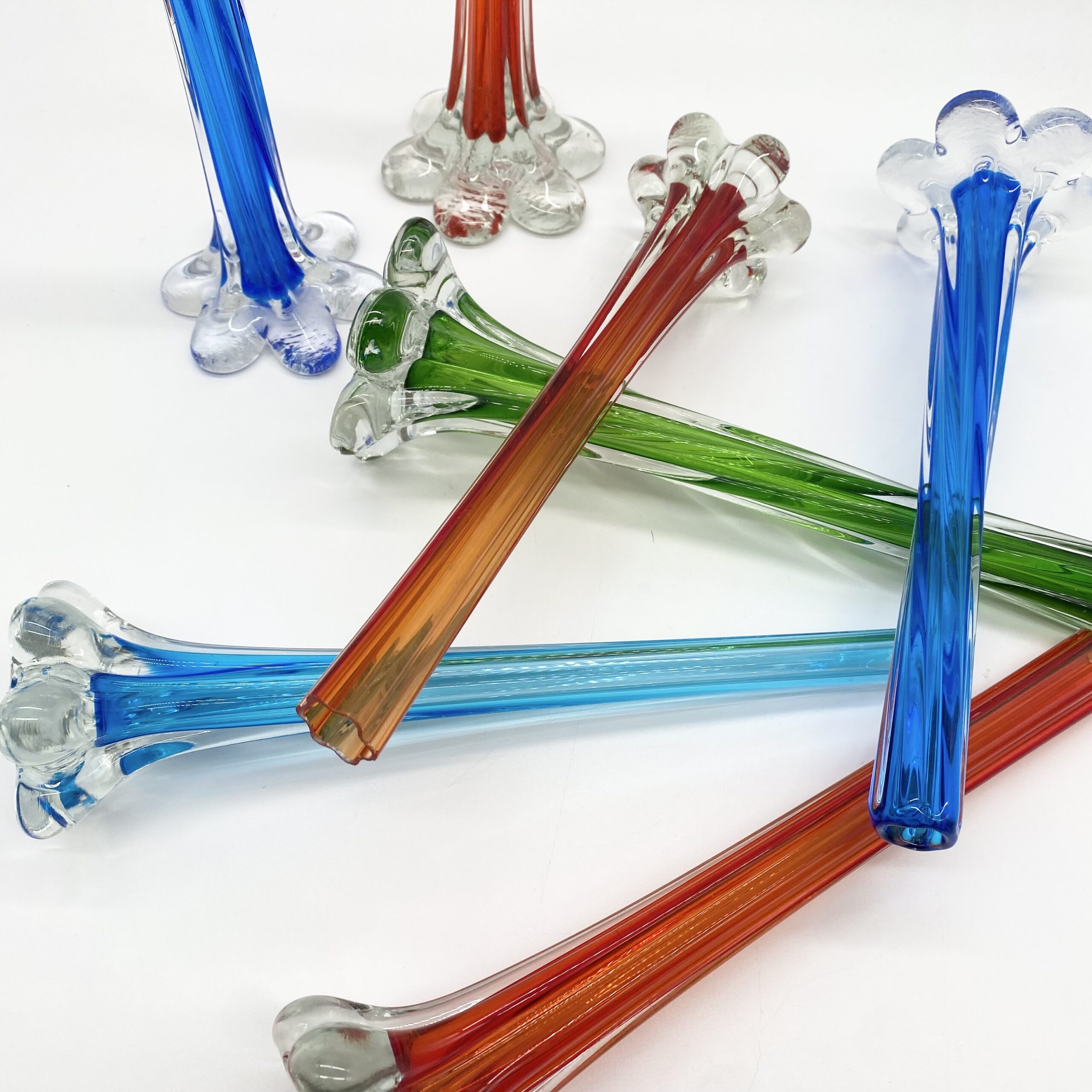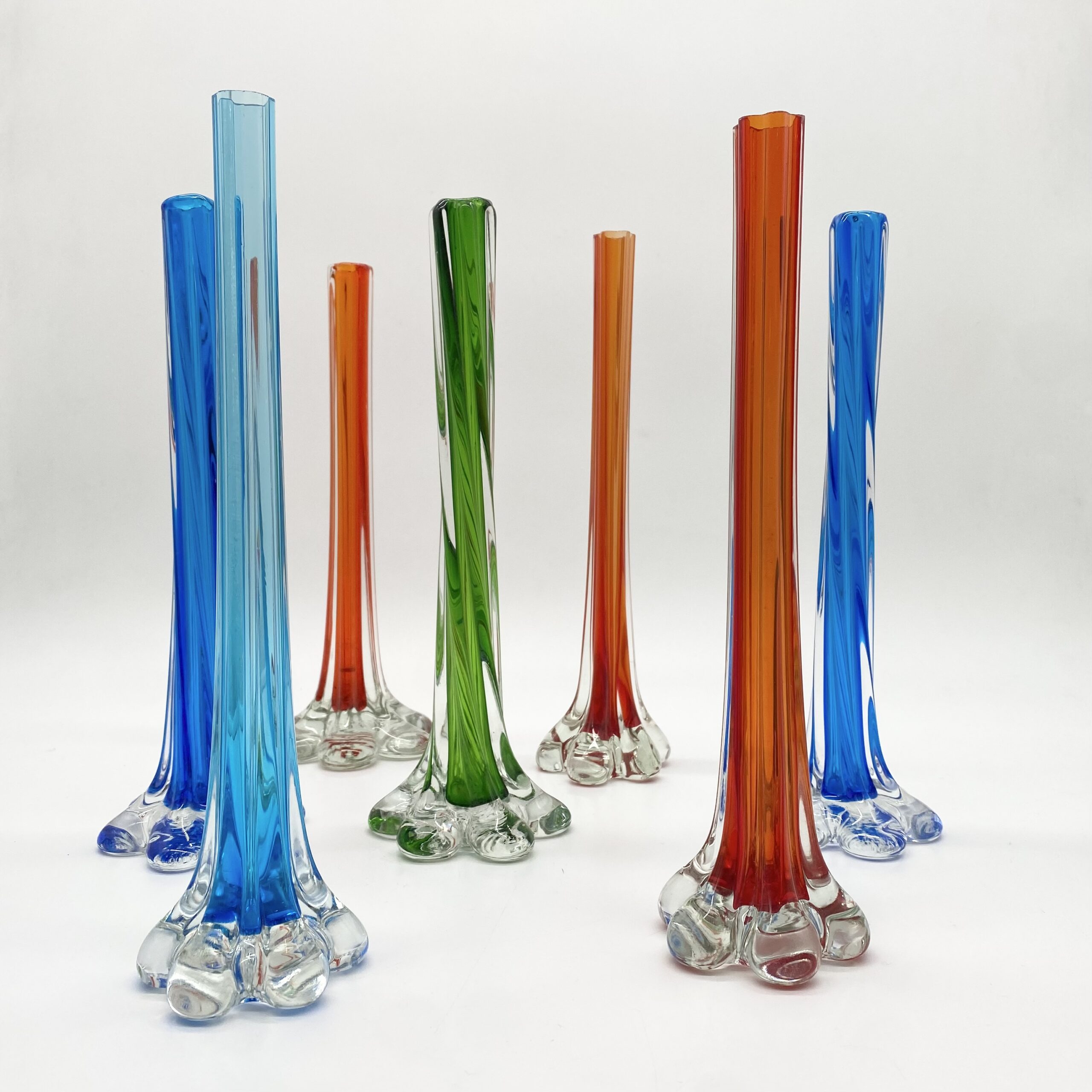 Élégant soliflore en verre de Murano, réalisé selon la technique du verre soufflé et étiré.