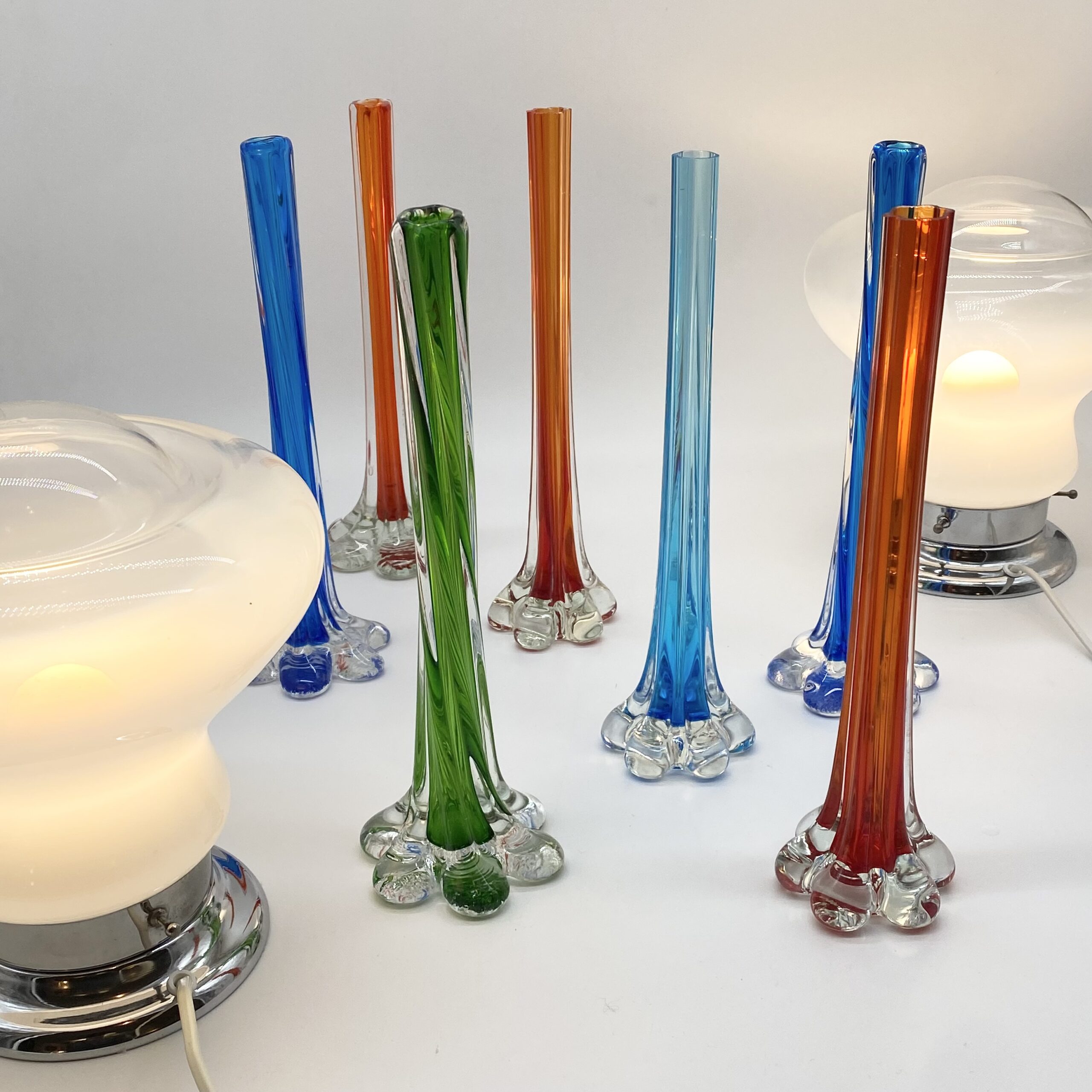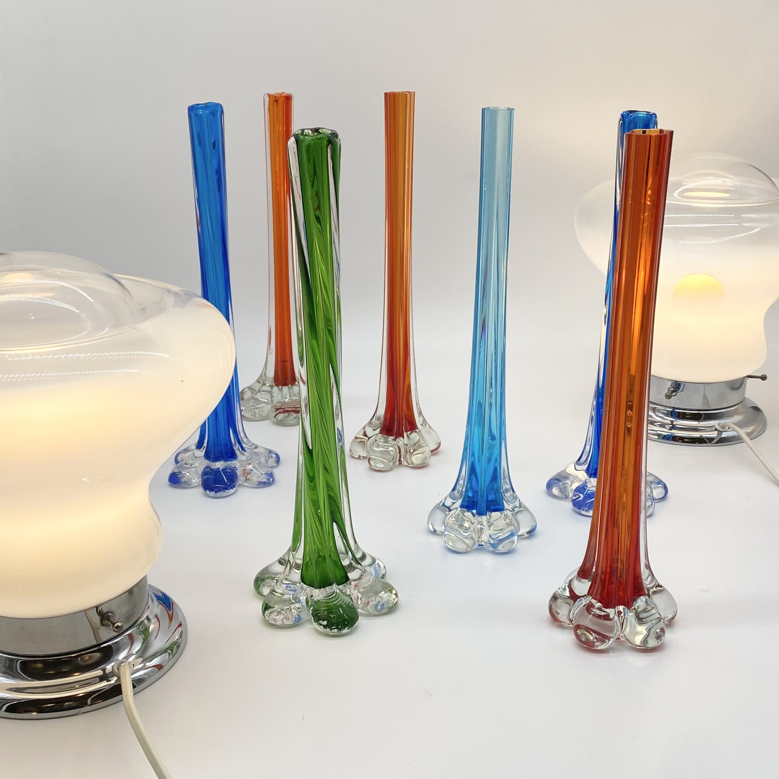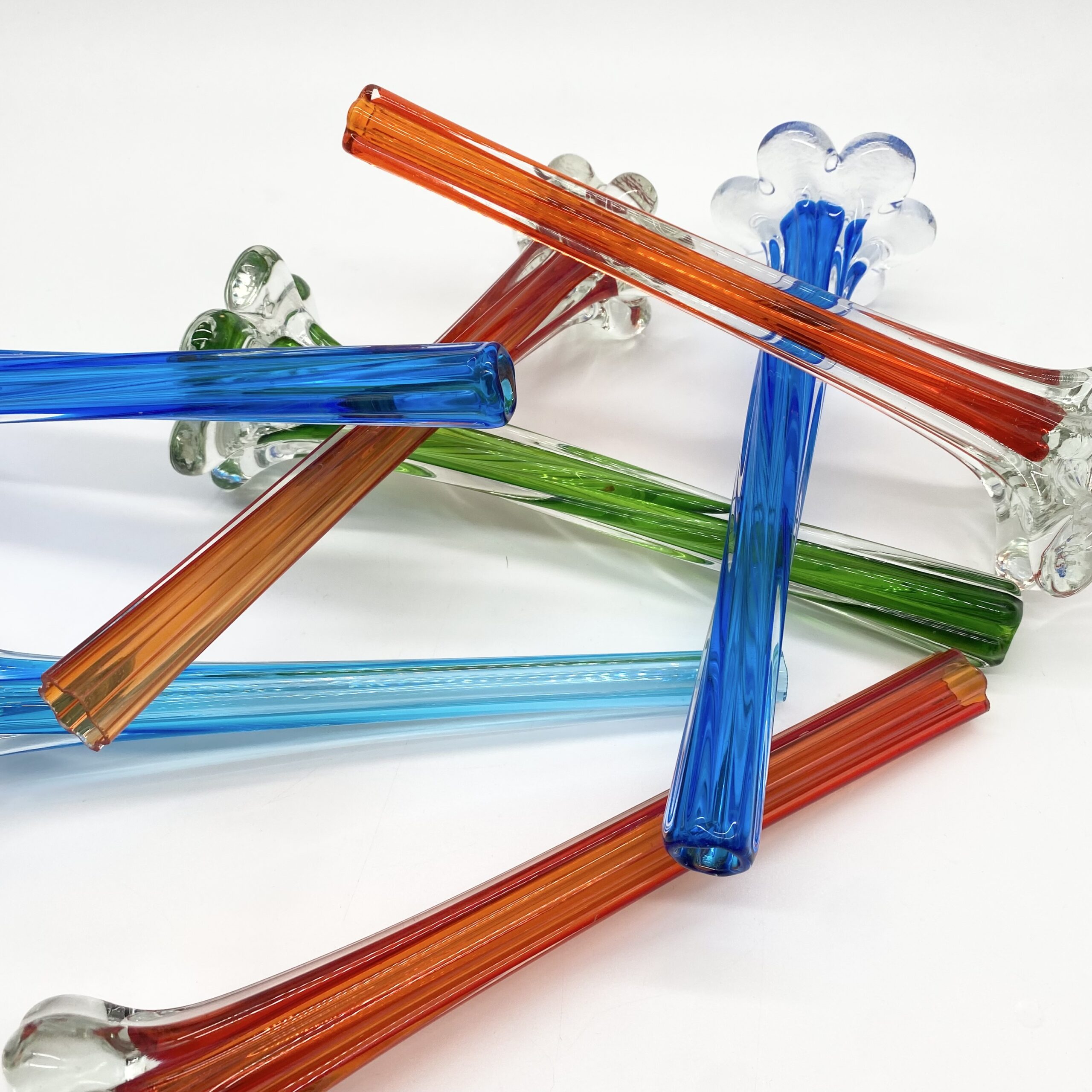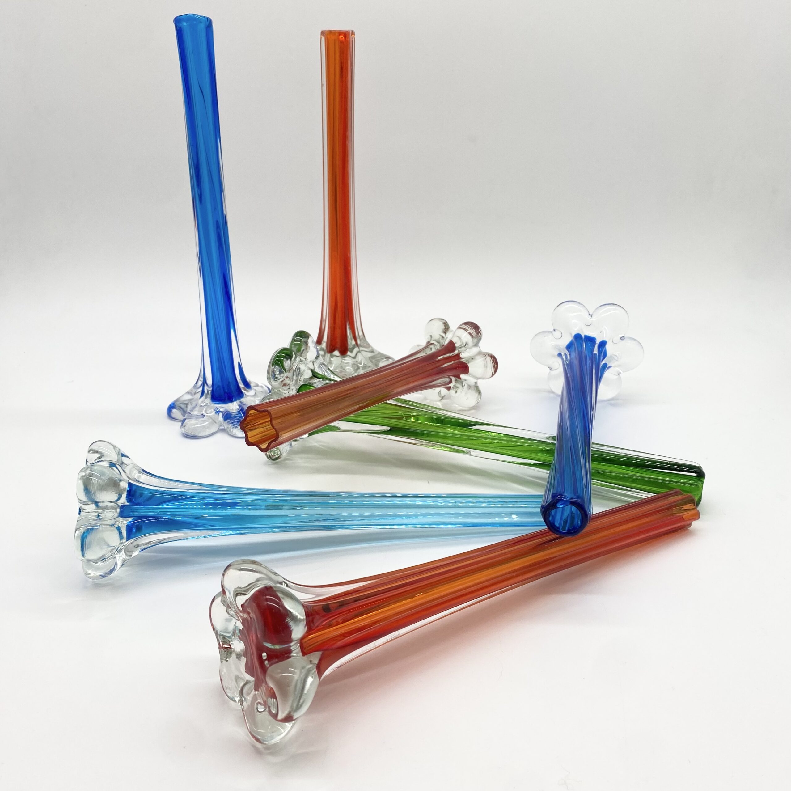 Élégant soliflore en verre de Murano, réalisé selon la technique du verre soufflé et étiré.
