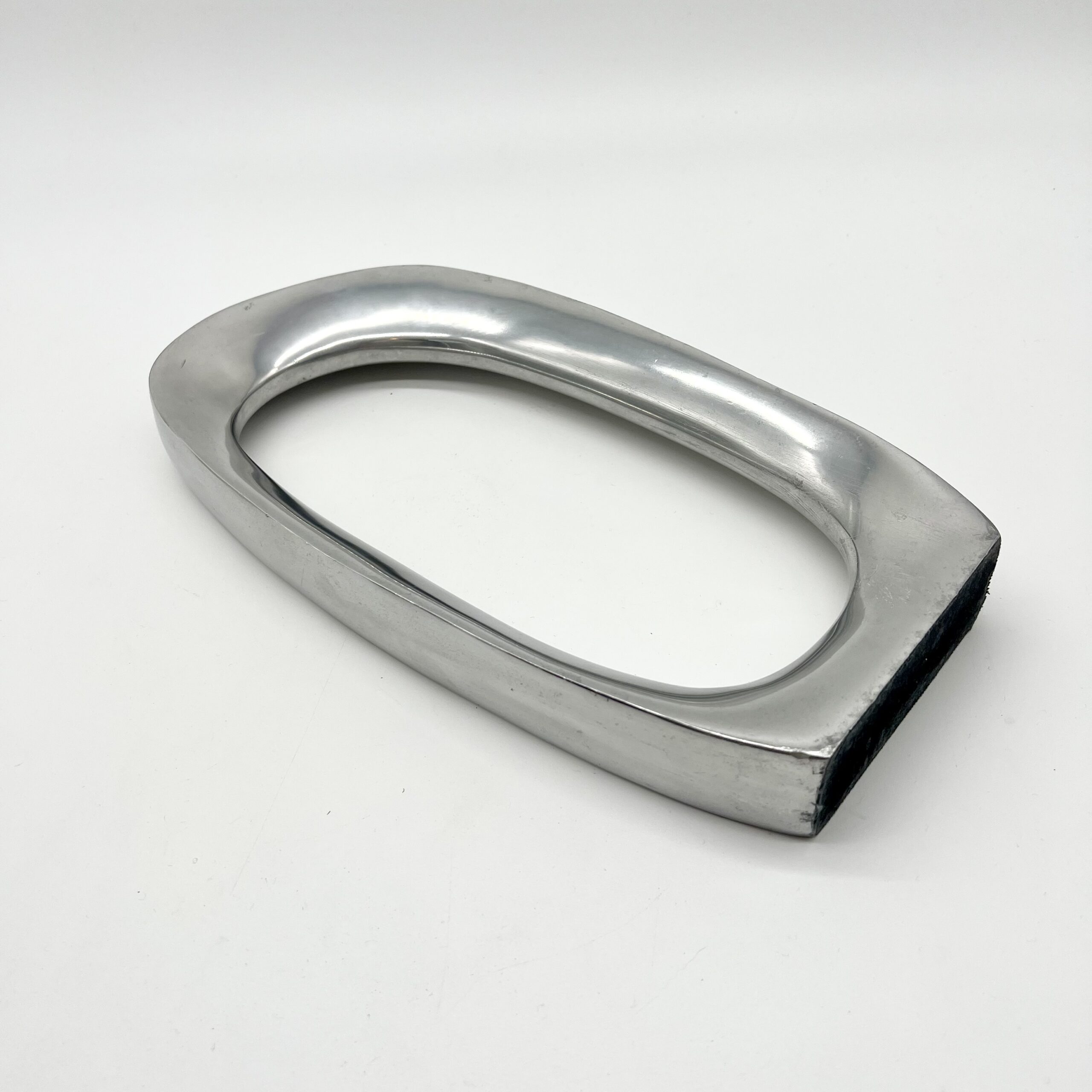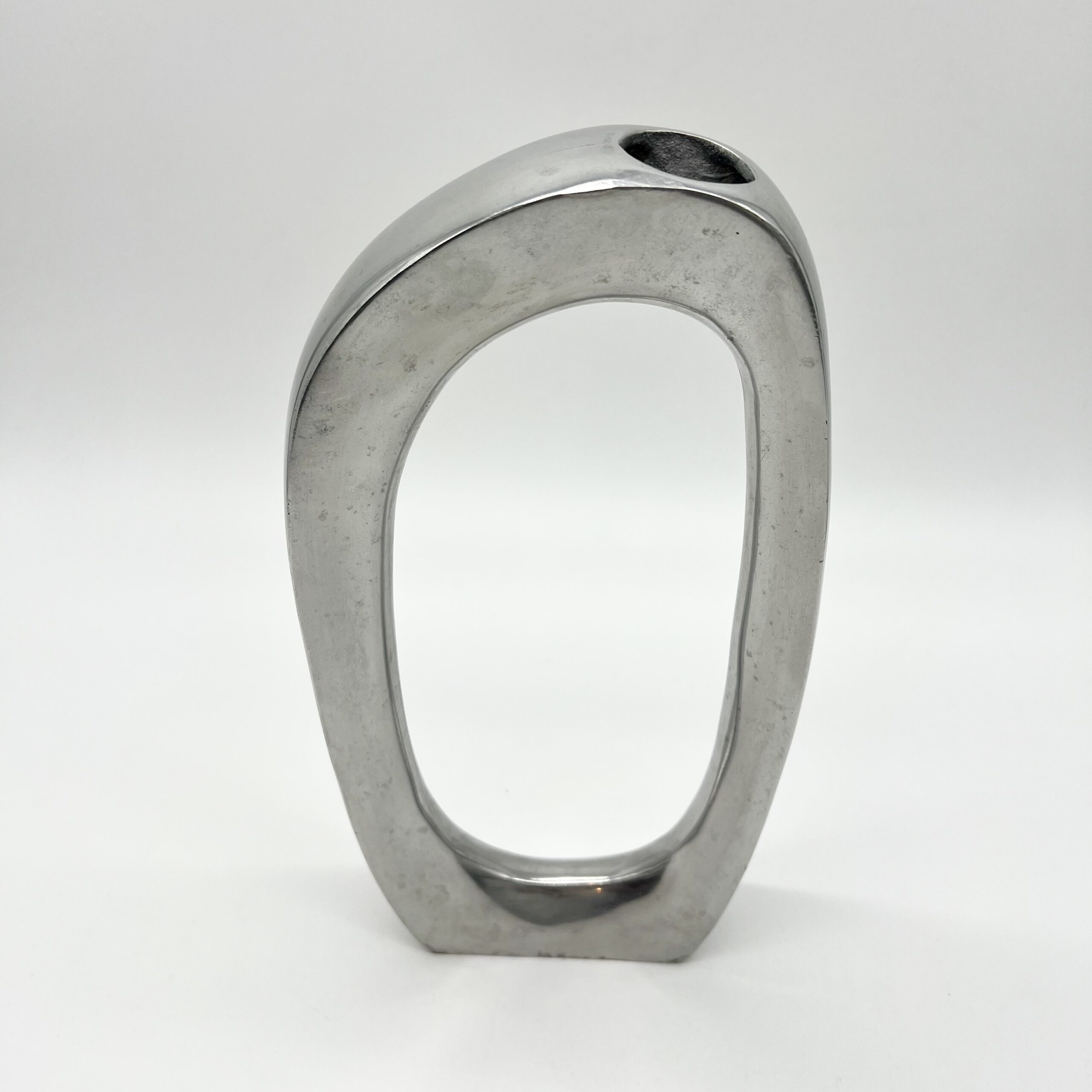 Vase en fonte d’aluminium poli, aux lignes organiques et à la silhouette ajourée.
