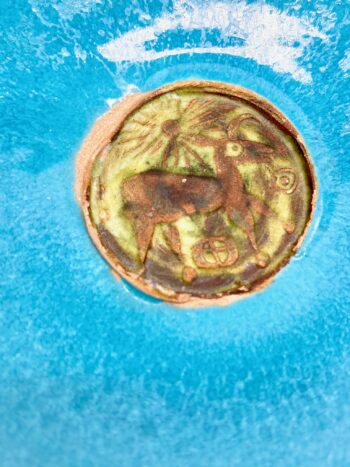 GRAND PLAT « BLUE & YELLOW » EN BARBOTINE – 1950s